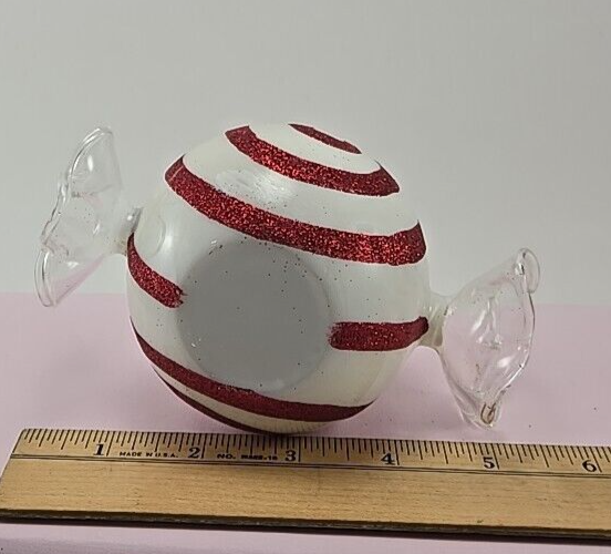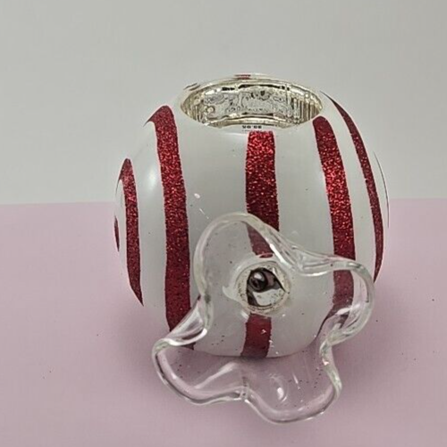 Elevate the festive ambiance of any room with this vintage Pier 1 Imports blown glass tea light candleholder. Adorned with a charming peppermint design, its multicolor palette adds a touch of whimsy to your holiday decor. The contemporary style piece is crafted from high-quality glass and is suitable for tea light use, bringing a warm and inviting glow to your space. Measuring approximately 5.5 inches in length, 3 inches in height, and 3.5 inches in width, this candleholder is a perfect accent for your mantel, shelf, or table. Despite its age, the candleholder maintains a beautiful presence that is sure to delight guests and add character to your holiday gatherings.