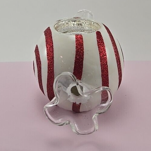 This vintage Pier 1 blown glass candleholder is a festive gem! The playful peppermint design and vibrant colors instantly brighten any holiday setup. The quality glass construction gives it a sturdy yet elegant feel, and the warm glow from a tea light creates such a cozy atmosphere. Perfect size for mantels or shelves—adorable and functional!