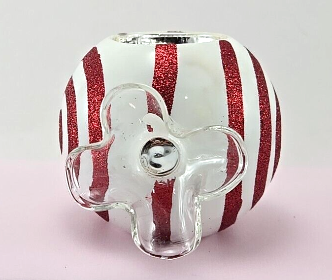 VTG Pier 1 Blown Glass Peppermint Tea Light Holder Christmas Candleholder