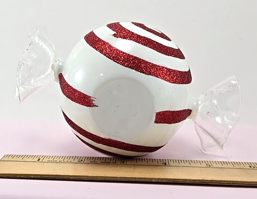 Elevate the festive ambiance of any room with this vintage Pier 1 Imports blown glass tea light candleholder. Adorned with a charming peppermint design, its multicolor palette adds a touch of whimsy to your holiday decor. The contemporary style piece is crafted from high-quality glass and is suitable for tea light use, bringing a warm and inviting glow to your space. Measuring approximately 5.5 inches in length, 3 inches in height, and 3.5 inches in width, this candleholder is a perfect accent for your mantel, shelf, or table. Despite its age, the candleholder maintains a beautiful presence that is sure to delight guests and add character to your holiday gatherings.