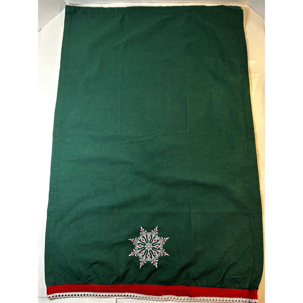 <![CDATA[<div>VTG Pier 1 Imports 100% Cotton Green Red White Embroidered Snowflake Hand Towel Pre-owned, 100% cotton, holiday green, red and white hand towel with a white and red embroidered snowflake. Very Good Pre-owned Condition, Measures 18"x28" ~I kindly request that all international and domestic buyers refrain from requesting shipment to an address other than what you have on file with Ebay, Mercari, or Poshmark. I will no longer ship the order to another country, or address, than the address you have on file with Ebay, Mercari, or Poshmark. If you would like your order to be shipped elsewhere, this is your responsibility. I Kindly Thank You.