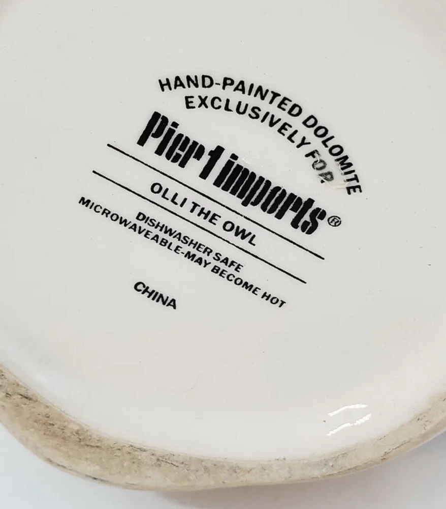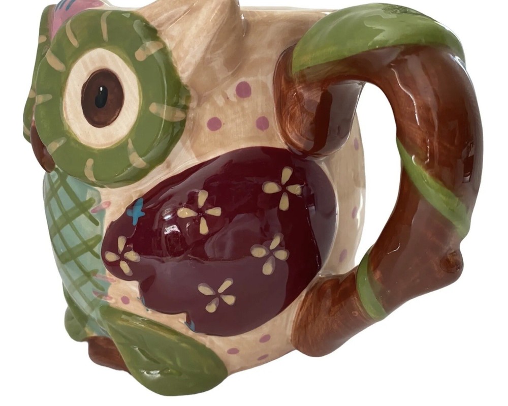 Owl Mug Pier 1 Imports Olli The Owl Large 3D Hand-Painted Mug 16 oz Coffee Mug. It measures approximately 4.5 inches tall by 5.5 inches from rim to handle. Excellent condition