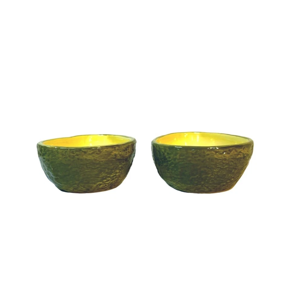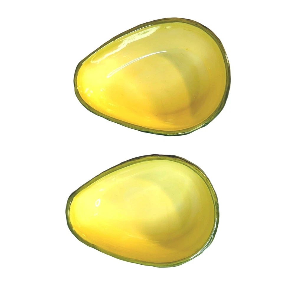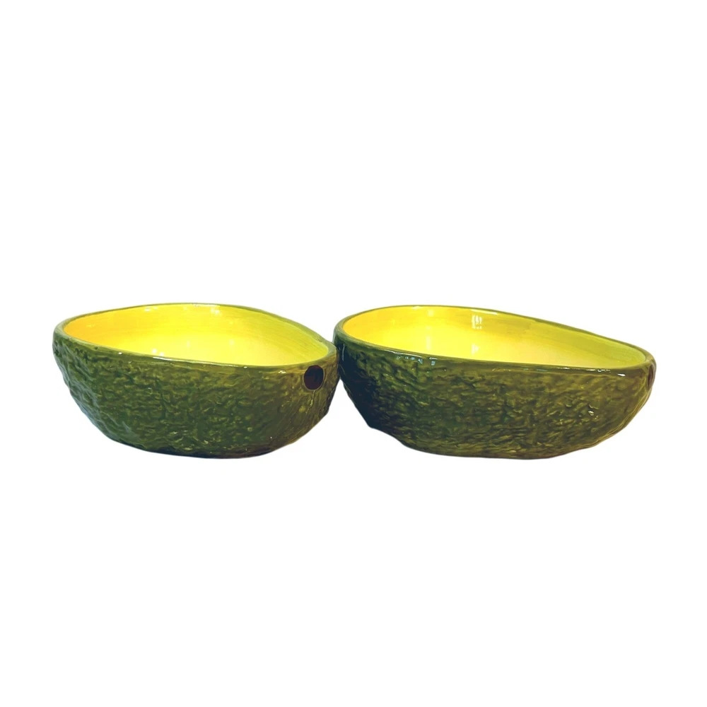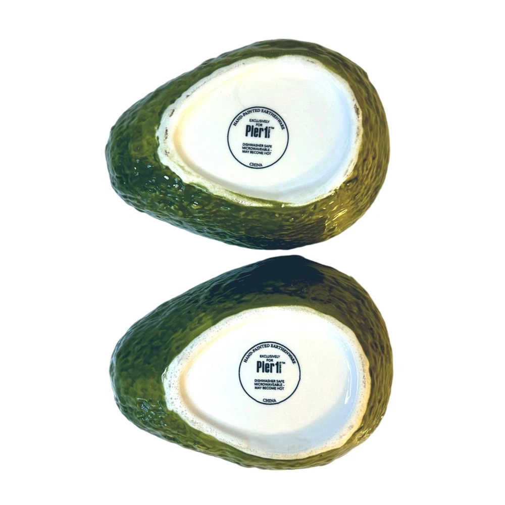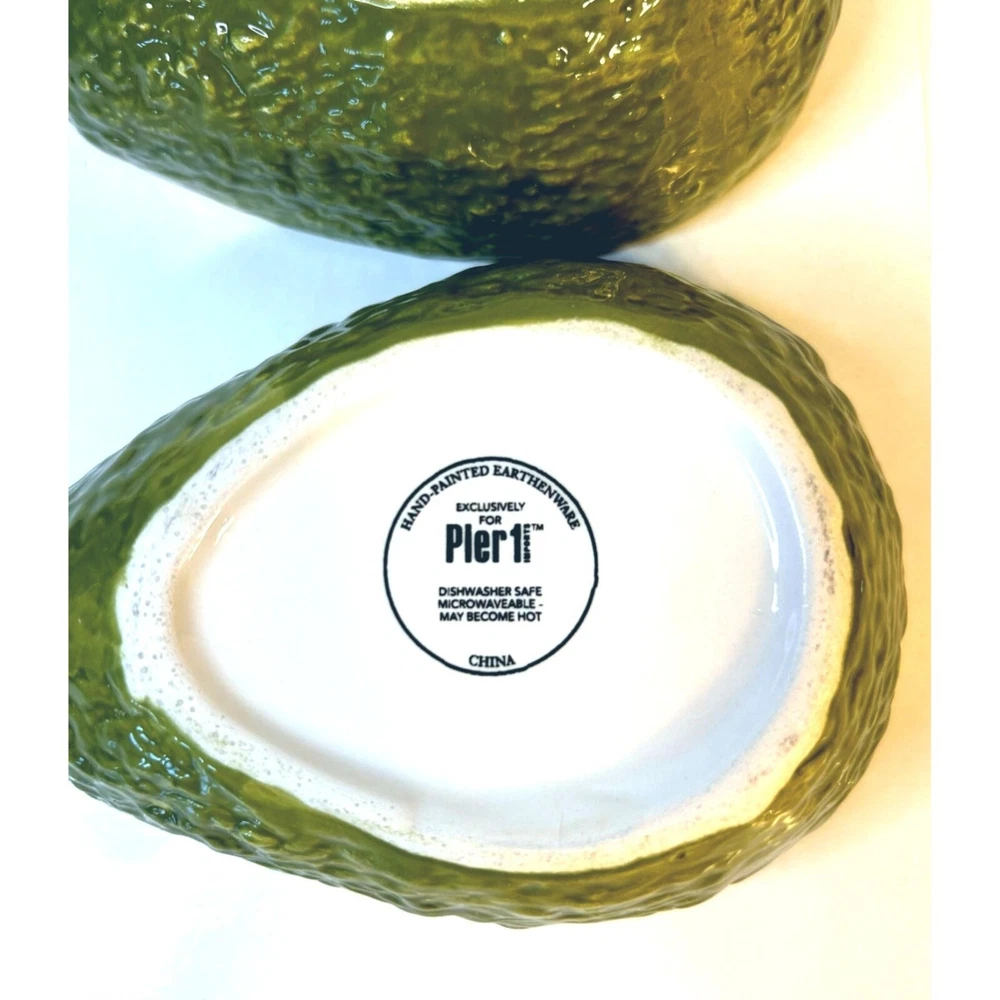VTG Pier 1 Imports Set 2 Hand Painted Earthenware Avocado Figural Serving Bowls There's no fruit quite like an avocado, and there's no container quite like these earthenware hand painted avocado bowls! These two distinctly shaped bowls are a monument to the magnificent avocado. Painted to replicate everything from it dark green pebbly exterior, to its creamy flesh. Perfect for serving individual servings of guacamole. Rated dishwasher and microwave safe. Very Good Pre-owned Condition, No Chips, Cracks, or Repairs. Measures Approximately 6" Wide Rim Lengthwise 4" Wide Rim Across 2.25" Tall 1.25" Depth ~I kindly request that all international and domestic buyers refrain from requesting shipment to an address other than what you have on file with Ebay, Mercari, or Poshmark. I will no longer ship the order to another country, or address, than the address you have on file with Ebay, Mercari, or Poshmark. If you would like your order to be shipped elsewhere, this is your responsibility. I Kindly Thank You. Features: • Modern • Made in China • Dishwasher Safe Condition: Pre-Owned Good
