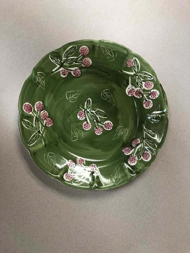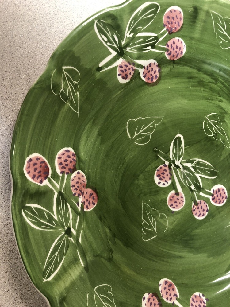 VTG Pier 1 platter, 12”, green with berries design, Made In Mexico.
