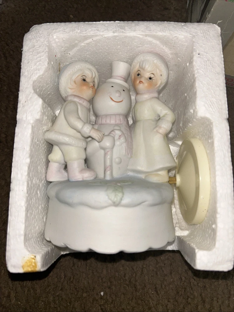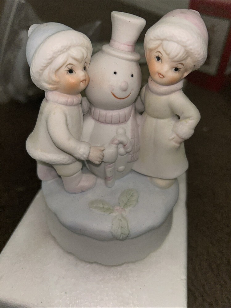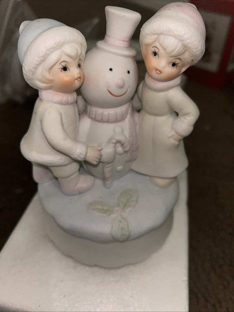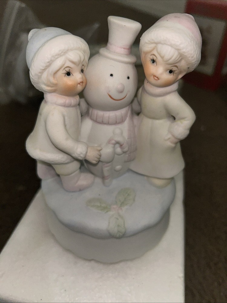 VTG Rotating Children & Snowman Music Box Ceramic Figurine Christmas Wind Up. Condition is Used. Shipped with USPS Ground Advantage.