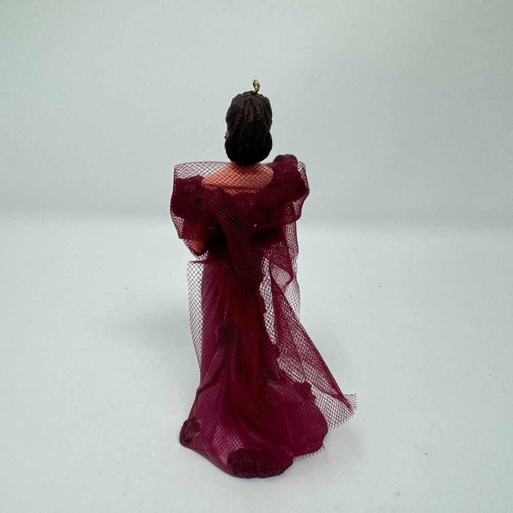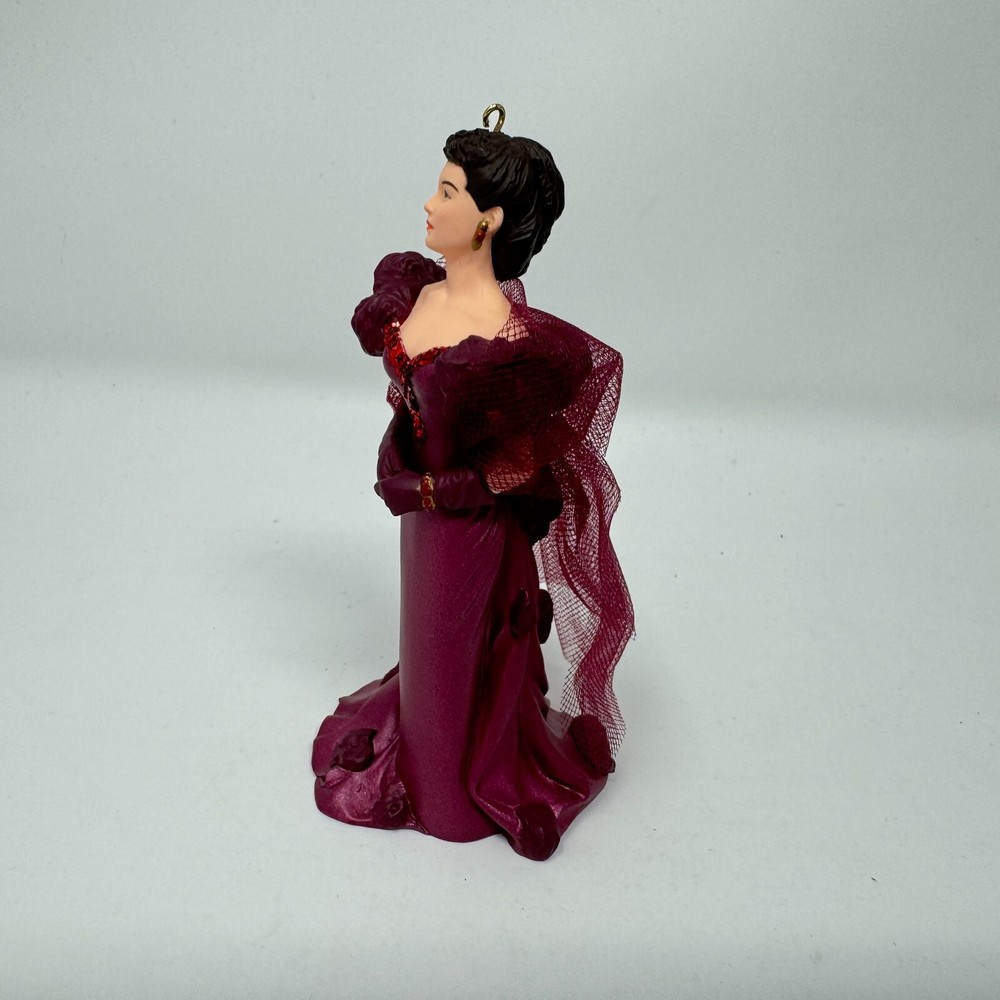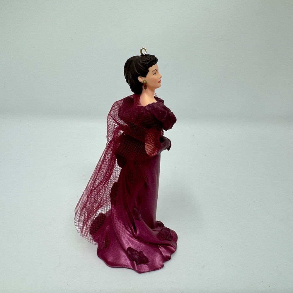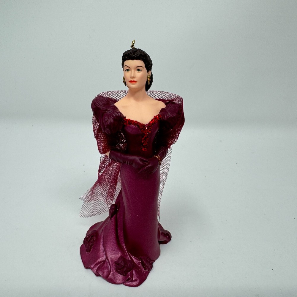 Add a touch of vintage glamour to your holiday decor with this beautiful Hallmark ornament featuring Scarlett O'Hara in her iconic burgundy dress from Gone with the Wind. Crafted with mixed materials and handcrafted in Thailand, this small ornament is perfect for any GWTW fan or collector of vintage ornaments. The multicolor design and intricate details make it a standout piece in any collection. This Scarlett O'Hara ornament is a must-have for any fan of the classic movie and is sure to be a conversation starter during the holiday season. Whether you're looking to add to your collection or just want to add a touch of elegance to your decor, this vintage Hallmark ornament is the perfect choice. VTG SCARLETT OHARA Burgundy Dress 1997 Hallmark Ornament Gone with the Wind IOB. Ornament is in excellent used condition. Mixed materials - plastic and fabric. Wrapped in bubble wrap and in original box. Box has some shelf wear - creasing - marks. Price tag has been removed.
