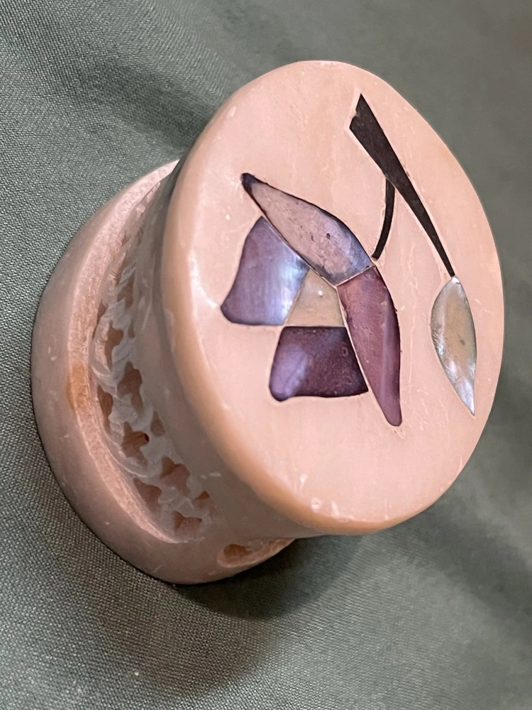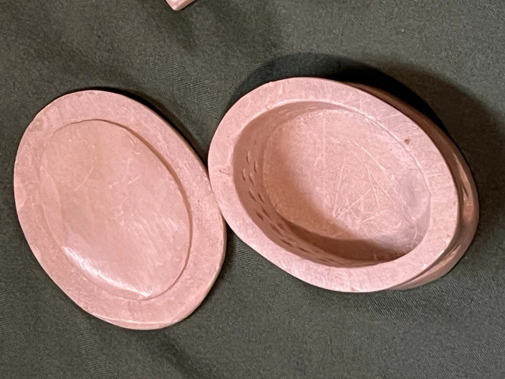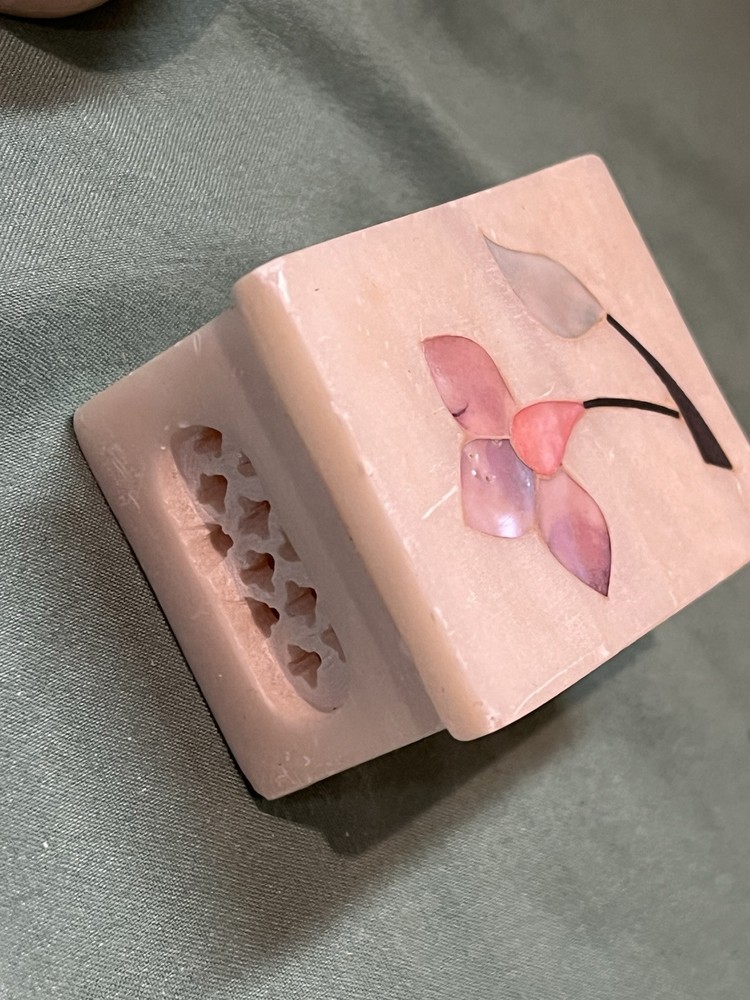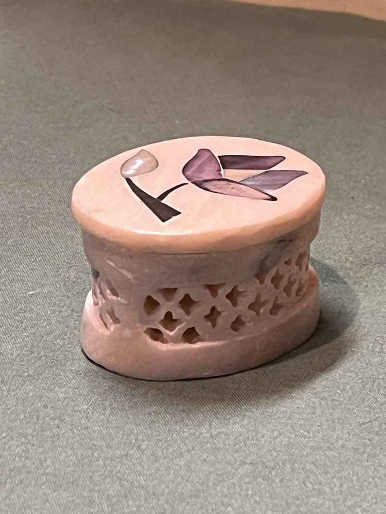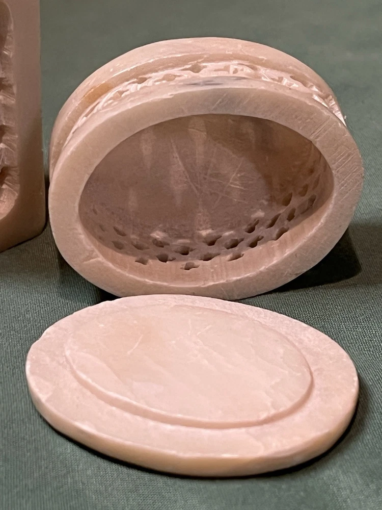 These vintage soapstone trinket boxes are absolutely stunning! Handcrafted in India, the intricate flower patterns and mother-of-pearl inlays give them a unique, elegant charm. The oval and square shapes are perfect for organizing jewelry, keys, or small keepsakes, and the removable lids make access effortless. A beautiful, functional addition to any dresser or nightstand!
