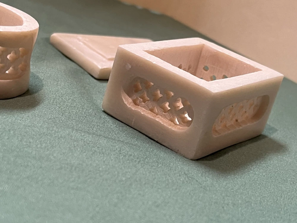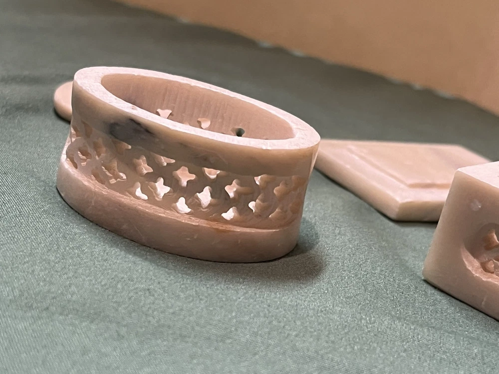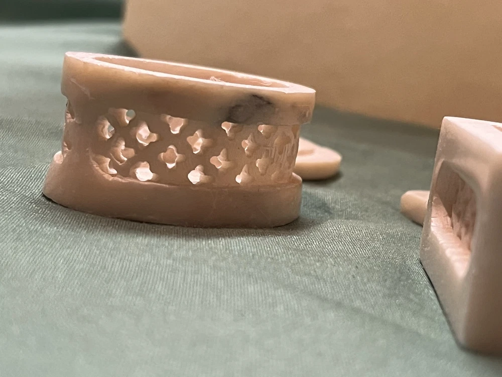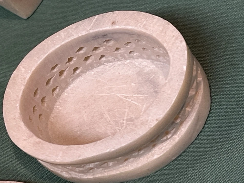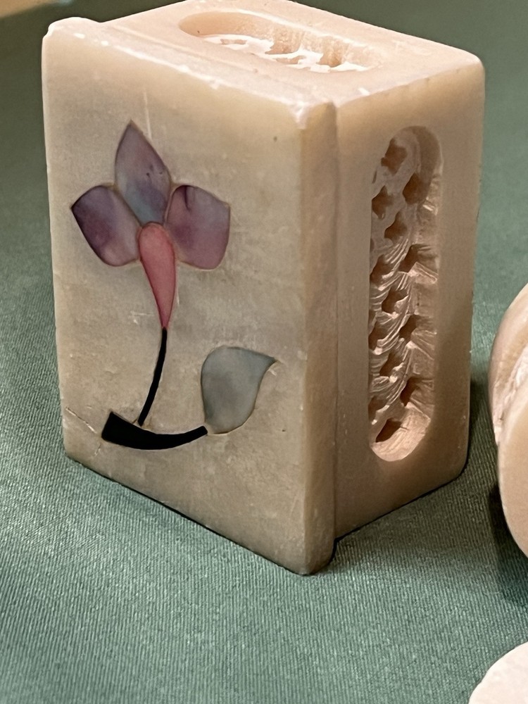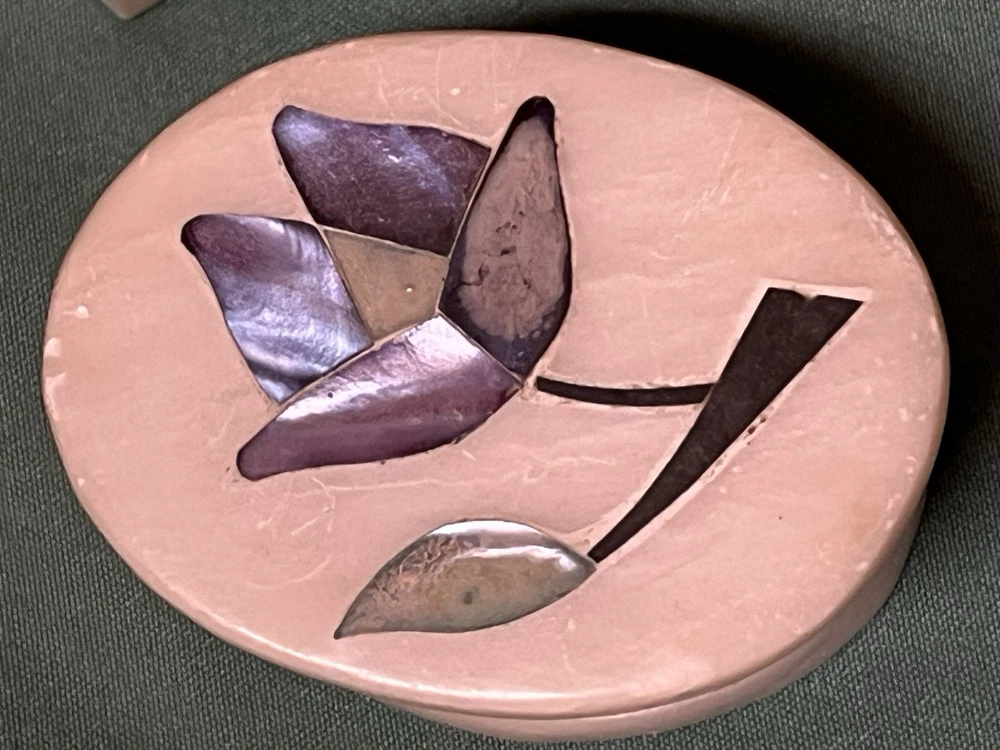 These vintage soapstone trinket boxes are absolutely stunning! Handcrafted in India, the intricate flower patterns and mother-of-pearl inlays give them a unique, elegant charm. The oval and square shapes are perfect for organizing jewelry, keys, or small keepsakes, and the removable lids make access effortless. A beautiful, functional addition to any dresser or nightstand!