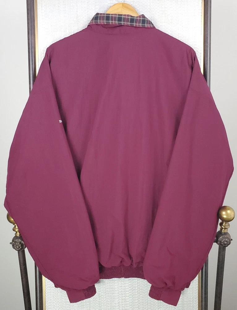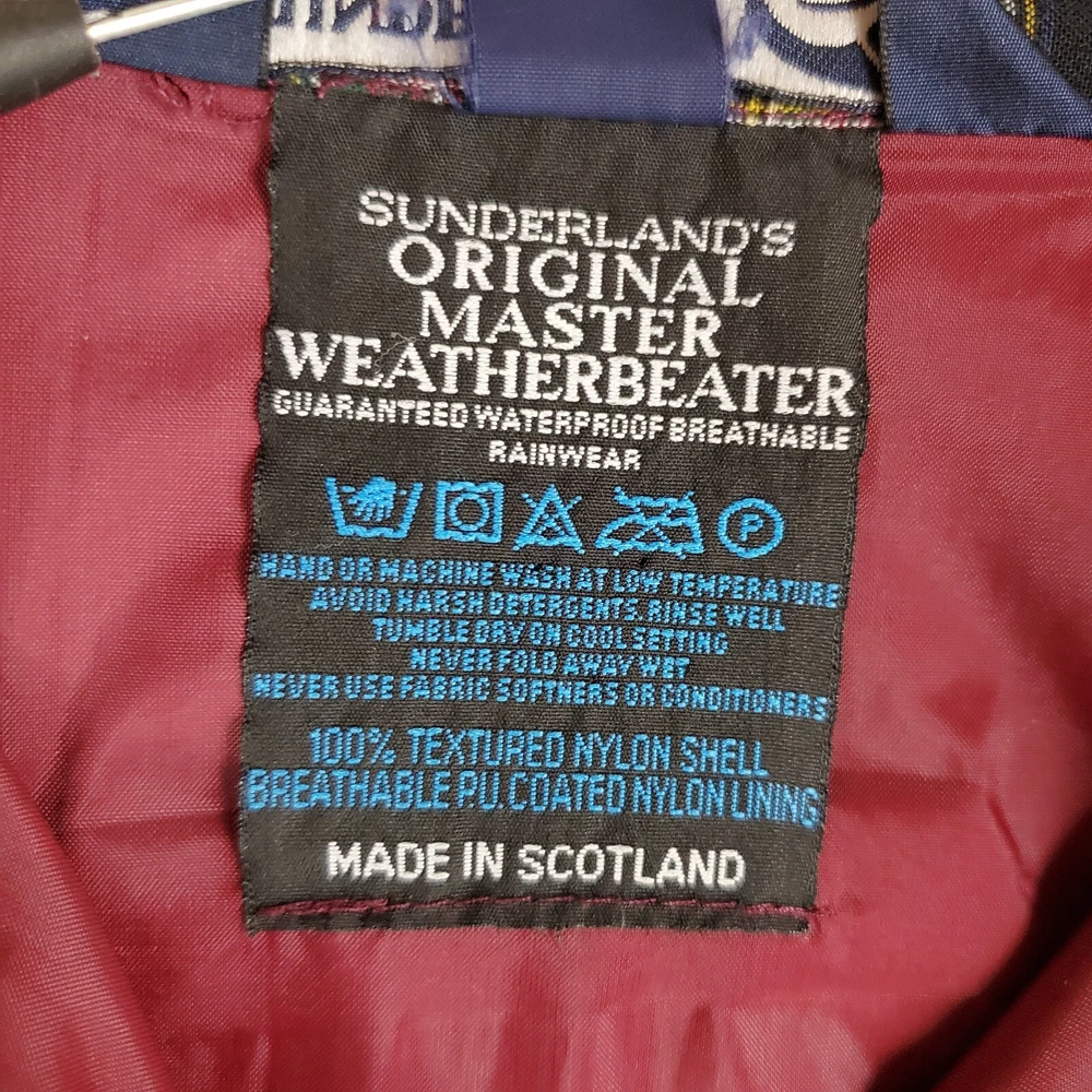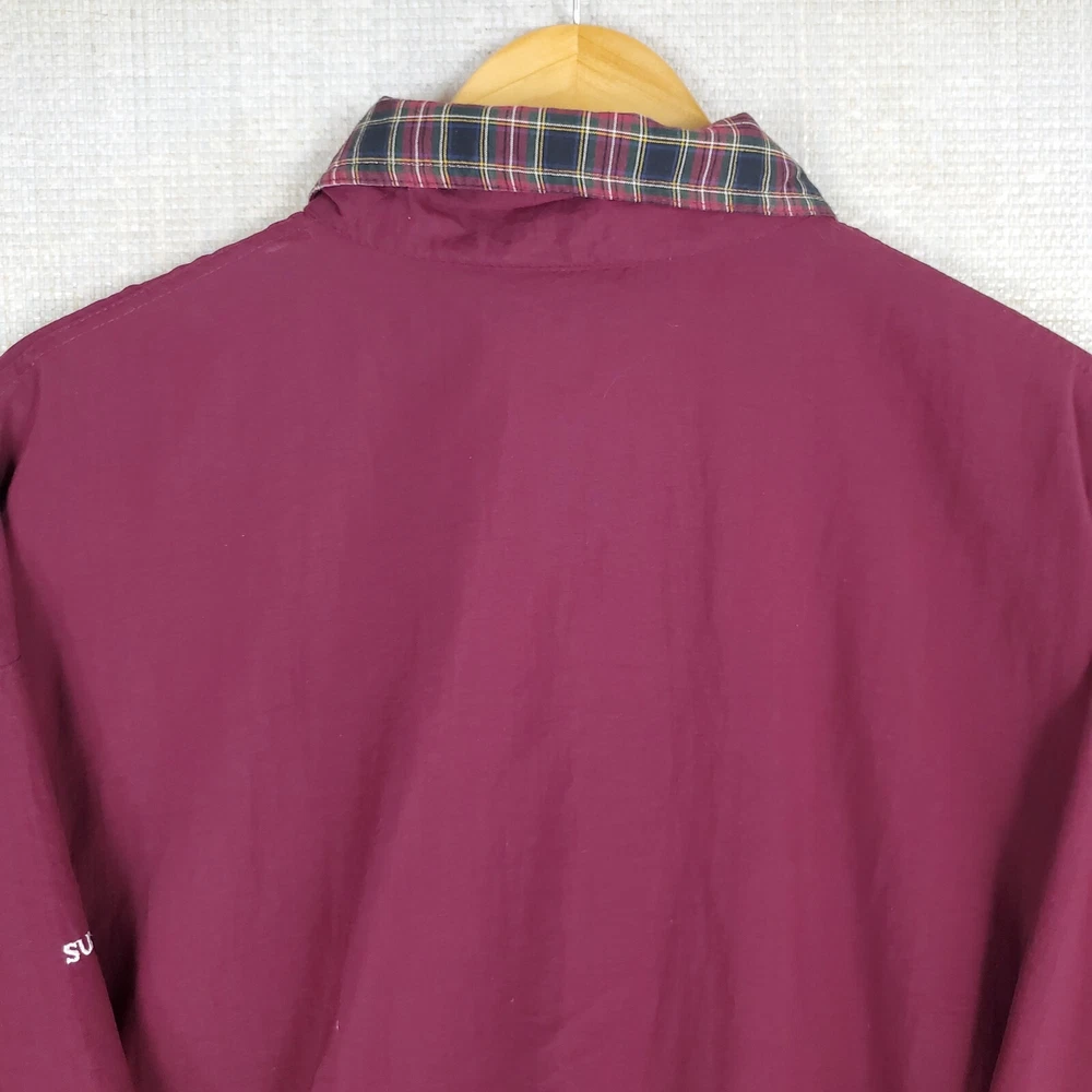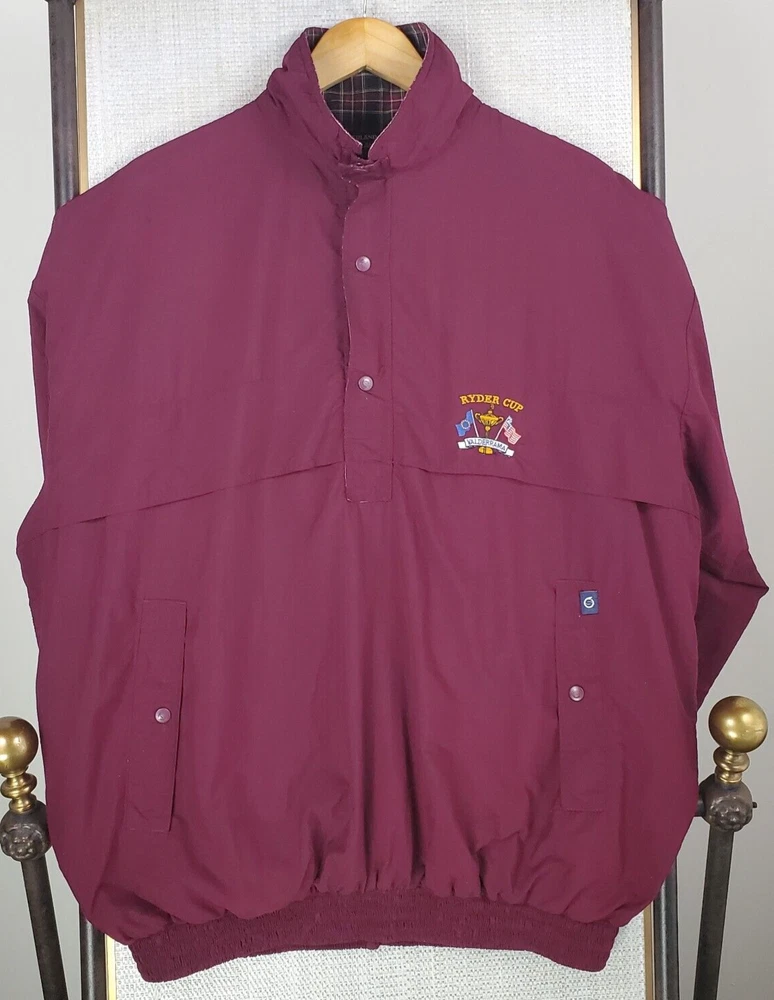 This windbreaker is a fantastic vintage find! The Oxblood Red color is rich and stylish, and the waterproof, breathable material keeps you dry without feeling stuffy. The 1/4 zip and snap storm flap add great functionality, while the Ryder Cup and Sunderland logos give it a cool retro vibe. Spacious side pockets and a comfortable fit make it perfect for golf or casual wear. Excellent condition—looks almost new! A must-have for collectors or anyone who loves classic sportswear.