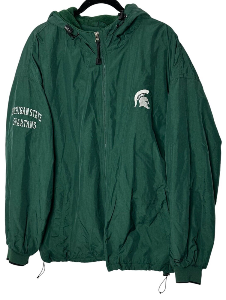 CS Crable Sportswear Michigan State Spartans Jacket 2XL Green Mens Full Zip Size: 2XL Men's XXL Condition: In good pre-owned condition. light wash wear Fabric Content: Nylon and Polyester Measurements are approximate. Cleaned per policy