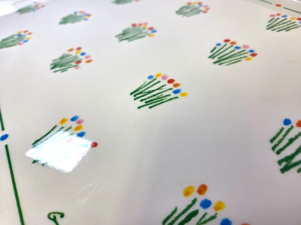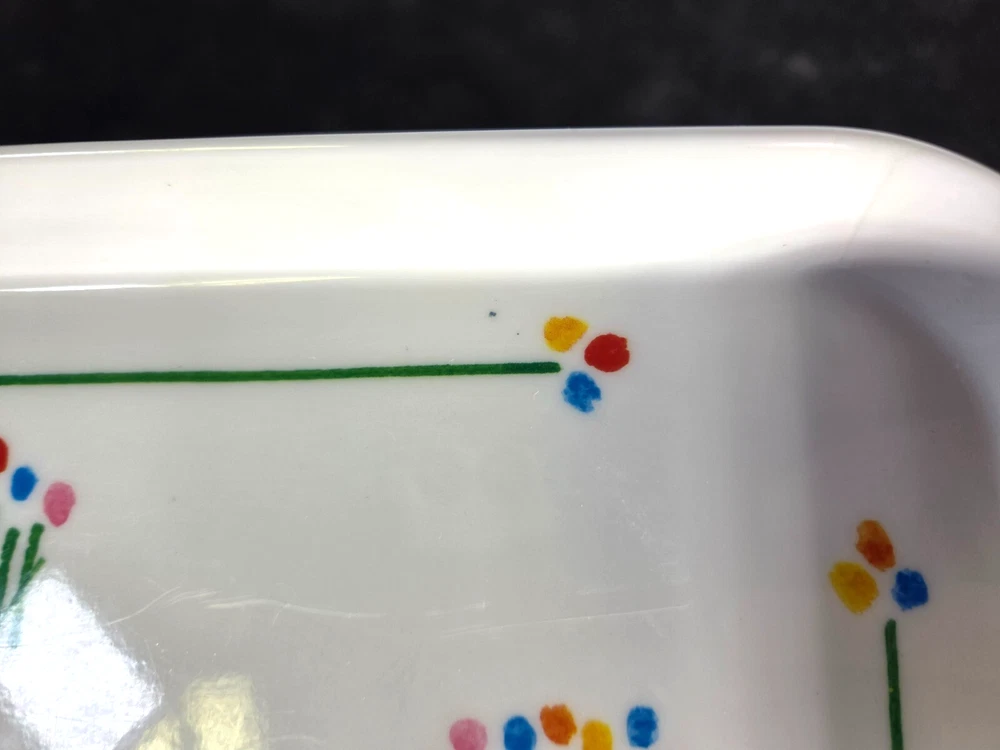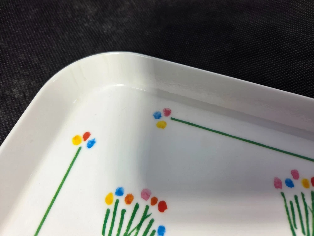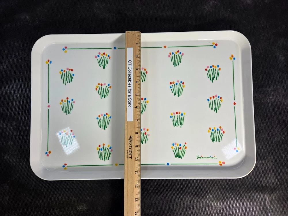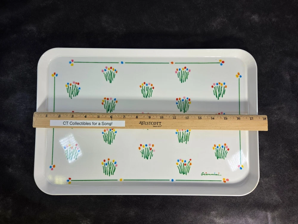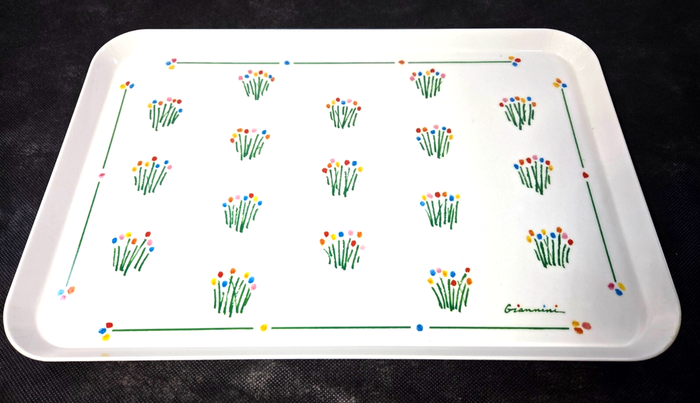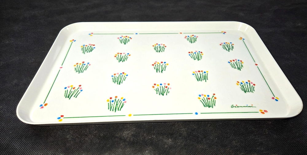 VTGE Paul Giannini Floral Melamine Tray 17 1/2" x 11 1/2" Italy "Marimekko-like" Good Condition, no cracks or chips. Some light wear in the form of scratches on top surface, and darker marks underneath, see pics.