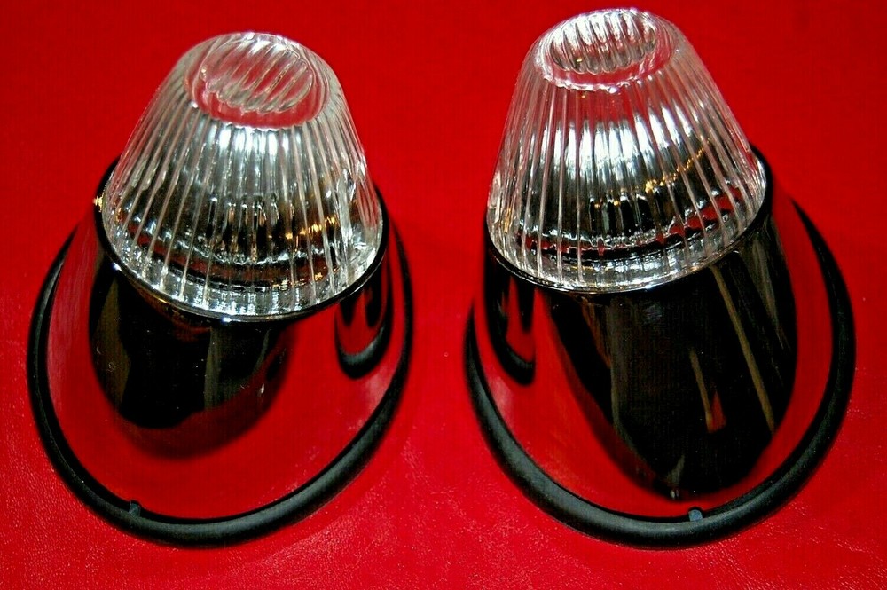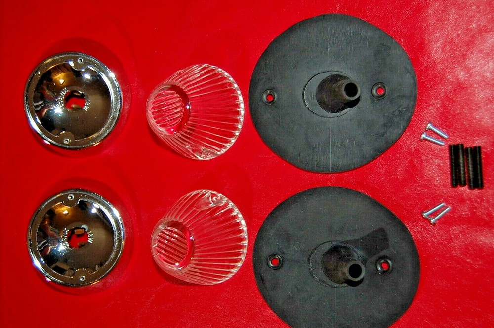 GHIA OWNERS....YOUR FRONT TURN SIGNAL LIGHTS DON'T WORK? YOUR BULB HOLDERS ARE PROBABLY 40+ YEARS OLD, IT'S TIME TO REPLACE THEM, IF YOU BUY USED, YOU CAN END UP WITH THE SAME PROBLEM! THIS COMPLETE KIT IS ORIGINALLY FOR 1964 TO 1969, HOWEVER IT CAN ALSO BE USED FOR ALL GHIAS 1959 TO 1969 WITHOUT HAVING TO MODIFY YOUR CAR IN ANY SHAPE OR FORM, IT WORKS FOR BOTH 6-VOLT AND/OR 12-VOLT ELECTRICAL SYSTEMS, IN THE CASE OF 1970-1974 YOU CAN ALSO USED THEM BUT THE FENDERS WILL HAVE TO BE FILLED SINCE THE "WRAP AROUND" FRONT SIGNAL LIGHTS ARE MUCH LARGER -------------------------------------------------------------- THIS LISTING IS FOR A HIGH QUALITY COMPLETE FRONT TURN SIGNAL LIGHT KIT WITH ALL CLEAR LENS! A COMPLETE SOLUTION TO THE FRONT SIGNAL LIGHT PROBLEM! ACTUAL PICTURES, THIS INCLUDES ALL NEW REPRODUCTION PARTS: ALL GASKETS THE CORRECT SCREWS (8) ALL CLEAR LENSES (2) AND OF COURSE, THE NEW AND BEAUTIFUL METAL CHROME BULB HOLDERS (2) (DO YOU NEED INDIVIDUAL PARTS FROM THIS KIT? LET ME KNOW) KEEP YOUR GHIA BEAUTIFUL AND SAFE TO DRIVE! APPLICATIONS: KARMANN GHIA COUPE 1964 - 1969 KARMANN GHIA CONVERTIBLE 1964 - 1969 GHIA OWNERS....TALK TO ME.... WHICH GHIA PARTS DO YOU NEED? INTERNATIONAL SHIPPING WELCOME! WE CAN SHIP ANYWHERE ON EARTH!