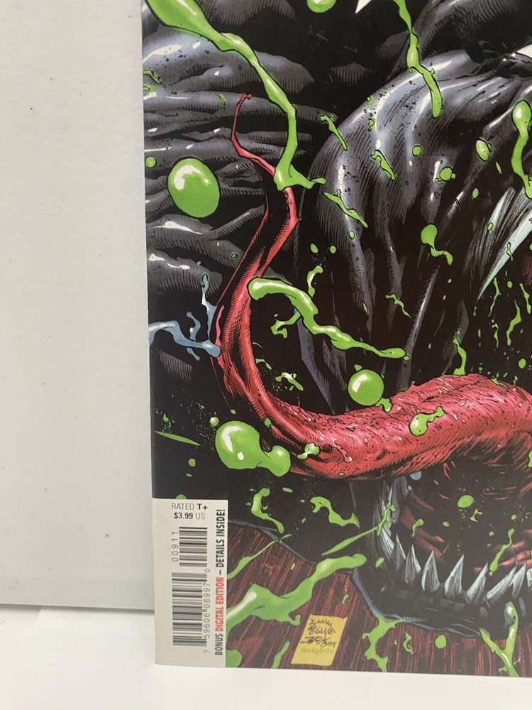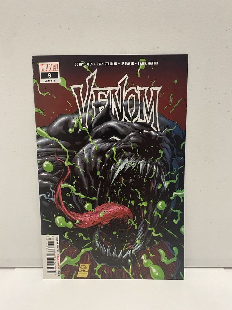 Dive into the enthralling world of Marvel's Venom with issue #9 from 2019, featuring the first full appearance of Dylan Brock. This gripping comic book, a standout addition to any Marvel collection, showcases the exceptional artistry of Edgar Delgado, Donny Cates, Ryan Stegman, and J.P. Mayer. The narrative, replete with action-packed sequences and character development, is complemented by the striking cover artwork of Jamie McKelvie. Venom #9 comes in English language, direct variant type, and is classified as a modern age comic book, perfect for fans of superhero teams like the Avengers and Dark Avengers. This single issue, rated 9.4 Near Mint, ensures a high-quality reading experience for general audiences. Collectors will appreciate the 1st edition status and the significant role this issue plays in the Venom series.