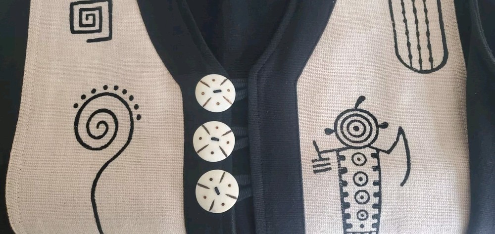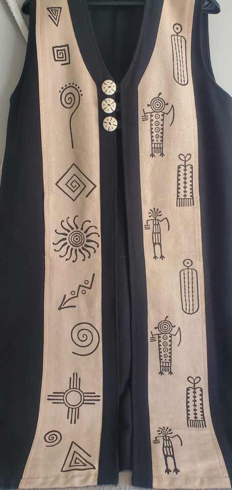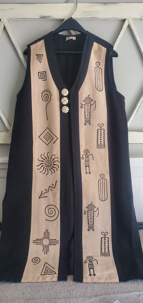 Elevate your style with this stunning Venus Imports women's long duster vest. Featuring a unique tribal design, this vest is perfect for any occasion, whether it's a casual day out or a party. The multicolor exterior and V-neck collar make this vest a standout piece, while the relaxed fit ensures comfort and versatility. Crafted from 100% cotton canvas and lined with 100% cotton, this vest is all-season and unlined, making it perfect for winter, summer, fall, and spring. The button closure and sleeveless design add to the vest's stylish appeal, includes pockets and side slits. Dry clean only.