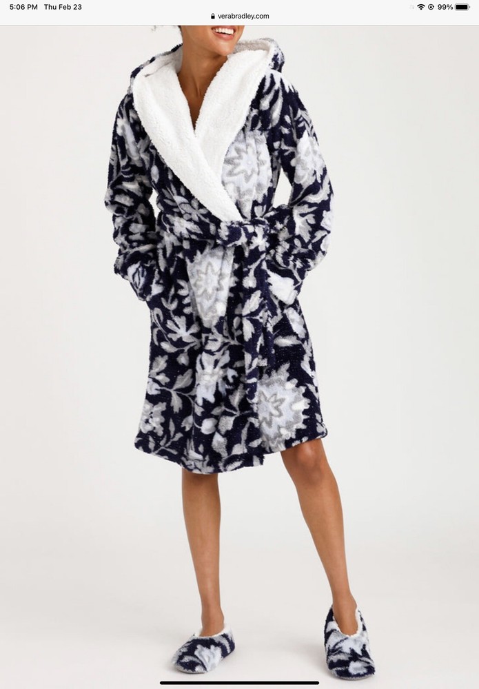 Vera Bradley Plush Shimmer Cozy Life Robe Frosted Lace Navy NWT....
