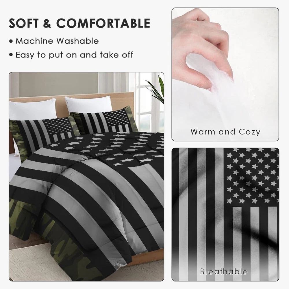 Versatile Full Size Military Comforter Set - Cozy for Every Season & Space ‹ › ‹ › ‹ › ‹ › ‹ › ‹ › ‹ › ‹ › ‹ › Versatile Full Size Military Comforter Set Cozy for Every Season & Space Key Features: Exceptionally Soft & Cozy: Experience luxurious comfort with a bedding comforter set made from superior-quality microfiber and filled with plush polyester, ensuring -round coziness for undisturbed sleep. Full-Size Set: This set includes a generously-sized comforter measuring 80" x 90" and 2 pillowcases with dimensions of 20" x 30" (pillow inserts not included). Masterfully Crafted: Each comforter is meticulously constructed with precise stitching for long-lasting durability, enhanced with HD digital printing for strikingly vibrant designs. Note: comforter and pillowcases feature single-sided printing. Care Instruction: Machine wash cold on a gentle cycle. Tumble dry on low to maintain its fresh appearance. Remove promptly and do not bleach to preserve vivid colors. Versatile & Travel-Friendly: This comforter set isn't just for the home; it's ideal for sprucing up guest rooms, dormitories, RVs, or vacation residences. Lightweight and portable, it's the perfect choice for those on the go or for outdoor excursions. Benefits: Indulge in the ultimate sleeping experience with unmatched softness and warmth. Perfect fit for full-size beds, providing ample coverage and comfort. Durable design ensures longevity, making this set a smart investment for your bedding needs. Vibrant, eye-catching designs enhance the aesthetic of any room. Easy to care for, ensuring minimum effort in maintenance while keeping it looking fresh. Portable design makes it a perfect companion for travel or temporary accommodation. Why Choose Our Versatile Full Size Military Comforter Set? Transform your sleeping space into an oasis of comfort with our versatile Full Size Military Comforter Set. Designed to provide luxury and durability, this set is your go-to option for achieving a cozy ambiance, whether at home or on the road. Don't settle for ordinary bedding; indulge in the extraordinary! Your ultimate comfort awaits - order your Versatile Full Size Military Comforter Set today and bring unparalleled warmth and style into your sleep sanctuary! Shipping Free & Fast Shipping - We offer free shipping to most of the USA with a normal delivery time of 3-7 days. However, due to the current situation, additional delivery time (up to 3 weeks) may be required for some items. Alternative Carriers - We may use alternative carriers (e.g. USPS, FedEx, UPS, etc.) to ensure your package arrives safely and on time. Due to the use of multiple carriers, we are unable to provide a tracking number automatically. Handling Time - Orders are processed and shipped within 1-2 business days of receiving cleared payment. Shipping Restrictions - Shipping to Alaska, Hawaii, Puerto Rico, Guam, and other US territories may incur shipping charges or delivery restrictions. Please contact us before ordering, or your order can be refunded/cancelled. State Restrictions - There may be restrictions based on your state of purchase. For example, certain items may not be shipped to California due to state regulations. Contact for Tracking Updates - If you require tracking updates or have any concerns about the delivery of your order, please feel free to contact us, and we will be happy to assist you. Return 30-Day Hassle-Free Returns - We want you to be completely satisfied with your purchase. If you are not, you can return the item within 30 days of receiving it for a full refund or exchange. Easy Return Process - To start a return, simply contact us and we will provide you with a prepaid return shipping label and detailed instructions. Restocking Fee - There are no restocking fees for returns. However, the buyer is responsible for return shipping costs if the return is not due to a seller's error. Refund Processing Time - Refunds will be processed within 5 business days of receiving the returned item in its condition. Payment We accept all major credit cards, PayPal, and Apple Pay for your convenience. Your payment information is secure and encrypted to ensure a safe and seamless transaction. Please complete your payment within 3 days of purchase to avoid any delays in shipping. Feedback Your feedback is extremely important to us. We strive to provide the best products and customer service possible. If you are satisfied with your purchase, please take a moment to leave us a positive review. If you have any concerns or issues with your order, please contact us before leaving negative feedback. We are committed to resolving any problems and ensuring your satisfaction. Contact Us If you have any questions or concerns, please feel free to out to our customer support team. You can contact us through the eBay messaging system. We are available Monday to Friday, 9:00 am to 5:00 pm EST, and we will do our best to respond to your inquiry within 24 hours. Buy it now and enjoy a pleasant shopping experience! Set Includes: Comforter,Pillowcase Material: Microfiber,Polyester Features: Breathable,Lightweight Theme: Space Care Instructions: Do Not Bleach,Machine Wash,Machine Wash Cold,Tumble Dry on Low Heat Department: Unisex Baby & Toddler,Kids,Adults Room: Bedroom Size: Full Type: Comforter Set Color: Black Fill Material: Polyester Pattern: American, America, United Insulation: All Seasons Number of Items in Set: 3 Style: Modern Season: All Closure Type: No Closure Thread Count: 401-600 GSM (Grams per Square Meter): Below 150