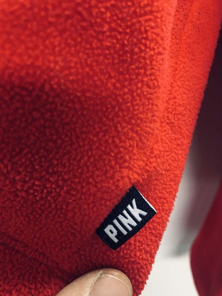 Victoria Secret Pink Size Large Fleece Pullover 1/4 Zip Crop Red All used items are washed to eBay’s standards...
