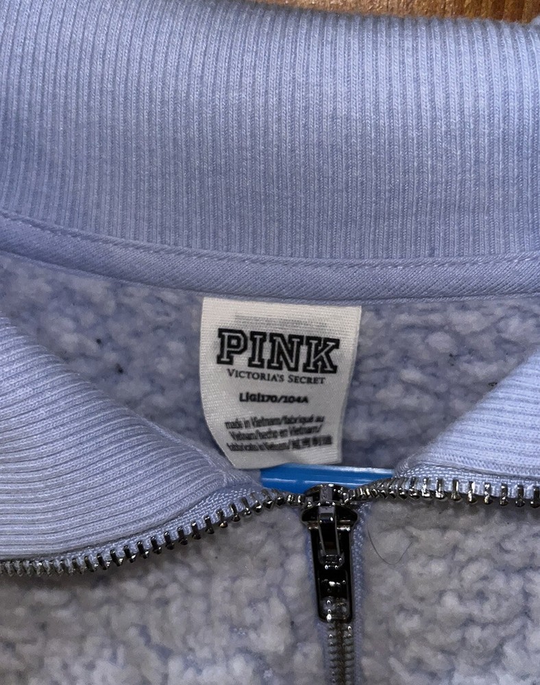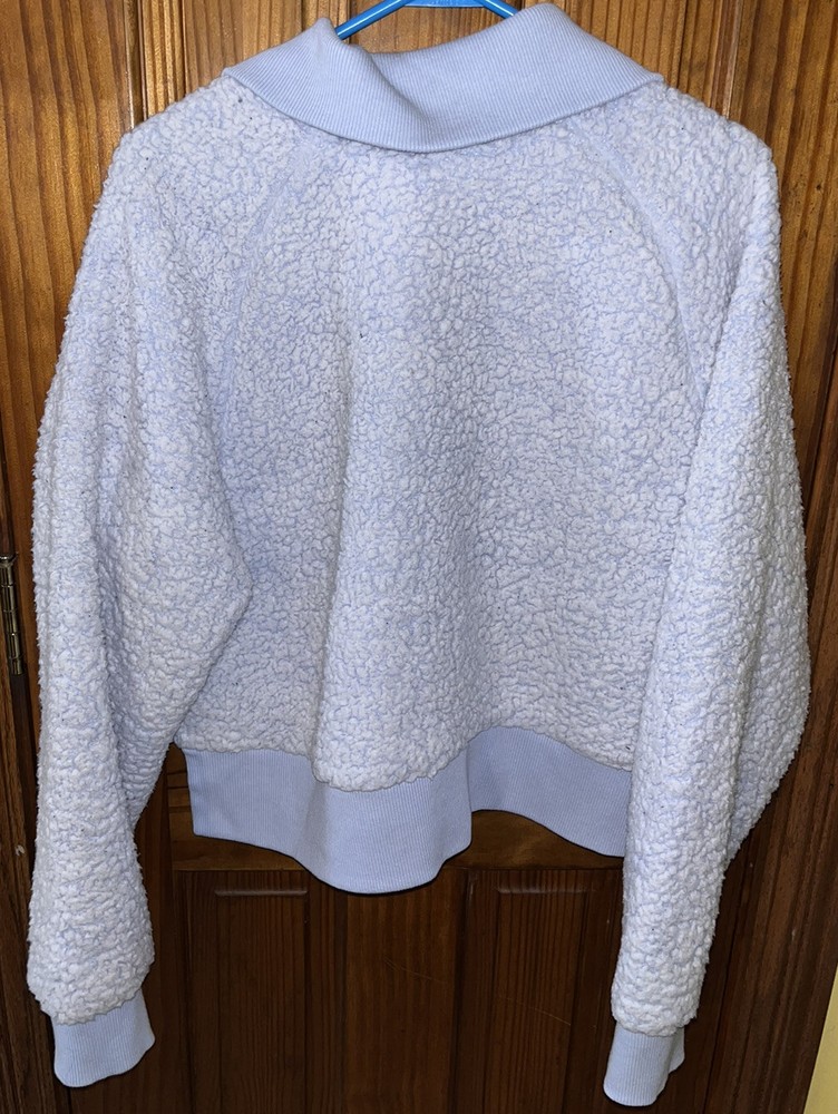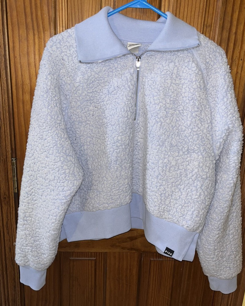 Victoria Secret Pink Teddy Sherpa 1/4 Zip Cropped Pullover Size Large -Baby Blue - very good preowned condition- Measures “ x “. Shipped Ground Advantage