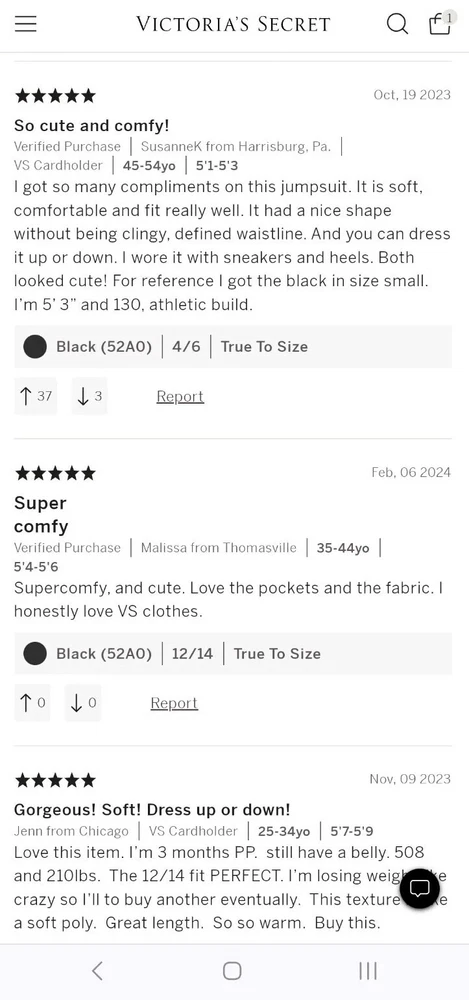 Victoria Secret Cozy Knit Jumpsuit Size 8/10 black cozy knit jumpsuit by Victoria Secret. Brand new still with tags and in plastic bag it was shipped in. * Online Exclusive Elevated enough for most any occasion, yet loungewear-level comfy, this one-piece design will be your choice for effortlessly chic style. By Lascana. • Round neckline with button closure at back • Side pockets • Includes fabric belt • Soft viscose blend • Machine wash • Imported Composition: 68% Polyester, 30% Viscose, 2% Elastane 26768369 Add a little chain belt, block heels and matching purse and viola. Casual night out. The fit and comfort are amazing. Thanks For Looking!!!