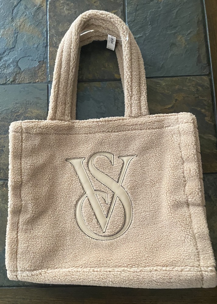 New NWT VICTORIA'S SECRET Large Cozy Plush Fleece Tote Bag Sherpa - Warm Brown....