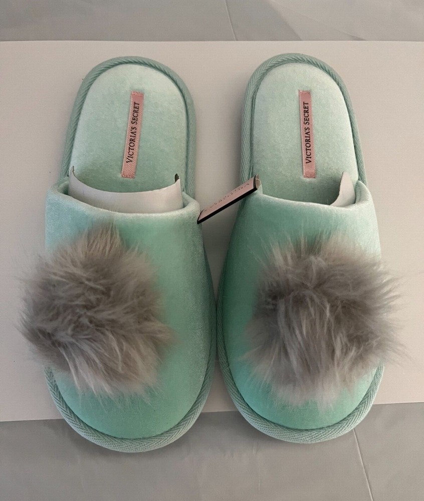 Victoria’s Secret Green Pom Pom Slipper size M Medium 7/8 New. The slippers are new and has never been used. Please inspect pictures carefully. If you have any questions and need anymore information please let me know before you buy/bid. Item will ship 1-2 business days after payment is received in full. ALL SALES ARE FINAL. NO RETURNS ACCEPTED. Serious Buyers only. Thank you