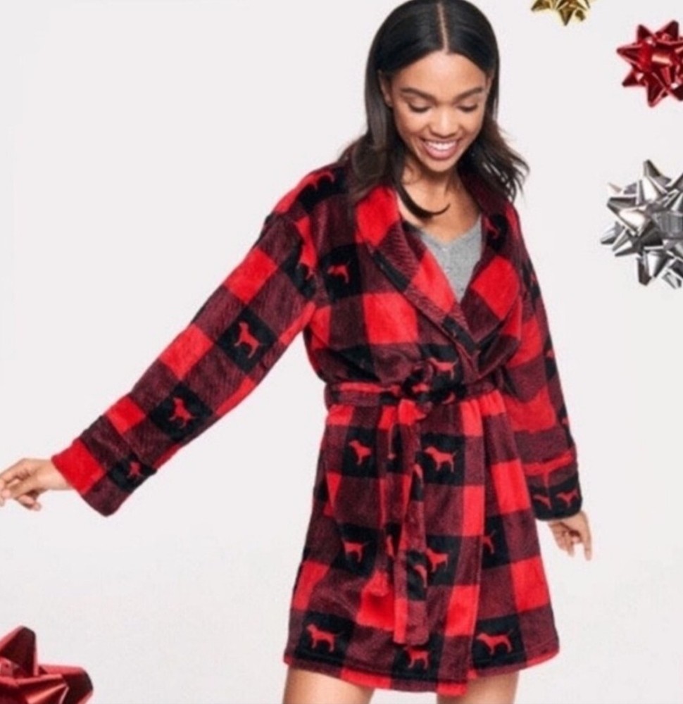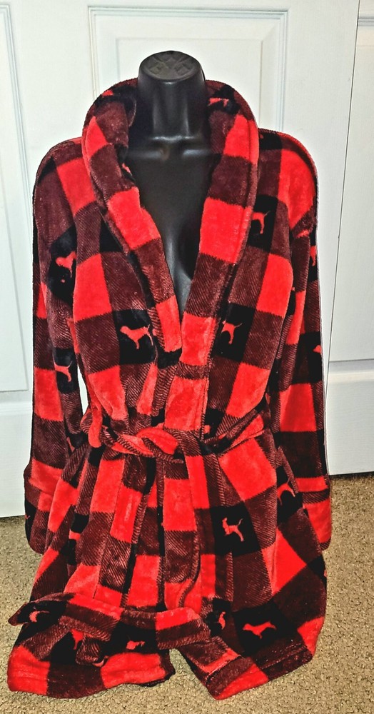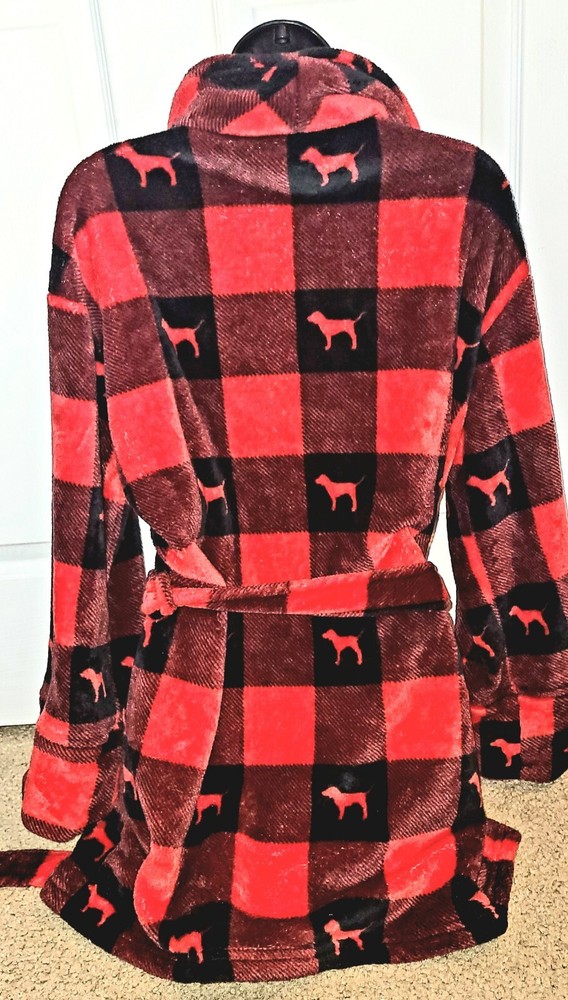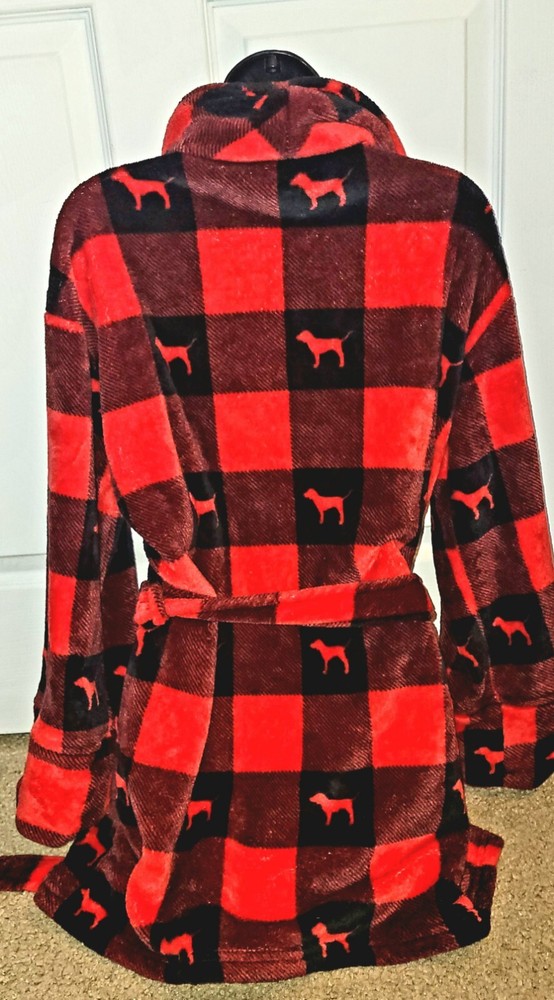 Victoria’s Secret PINK Black & Red Dogs Plush Fleece Tie Robe size M/L Excellent pre-owned condition! Worn once. Super plush and soft....
