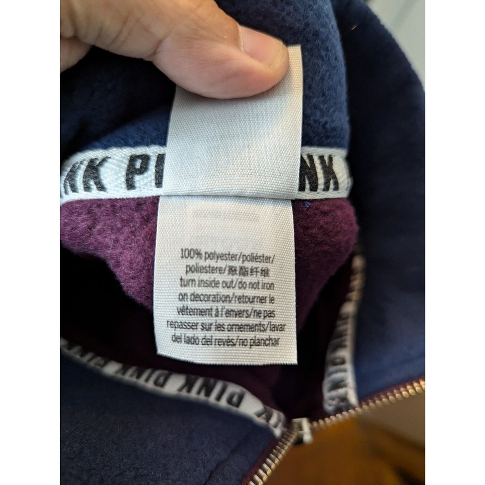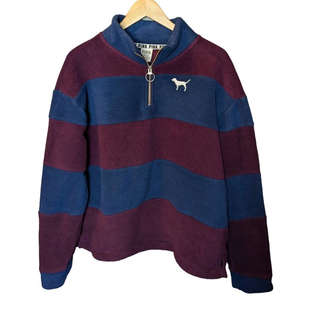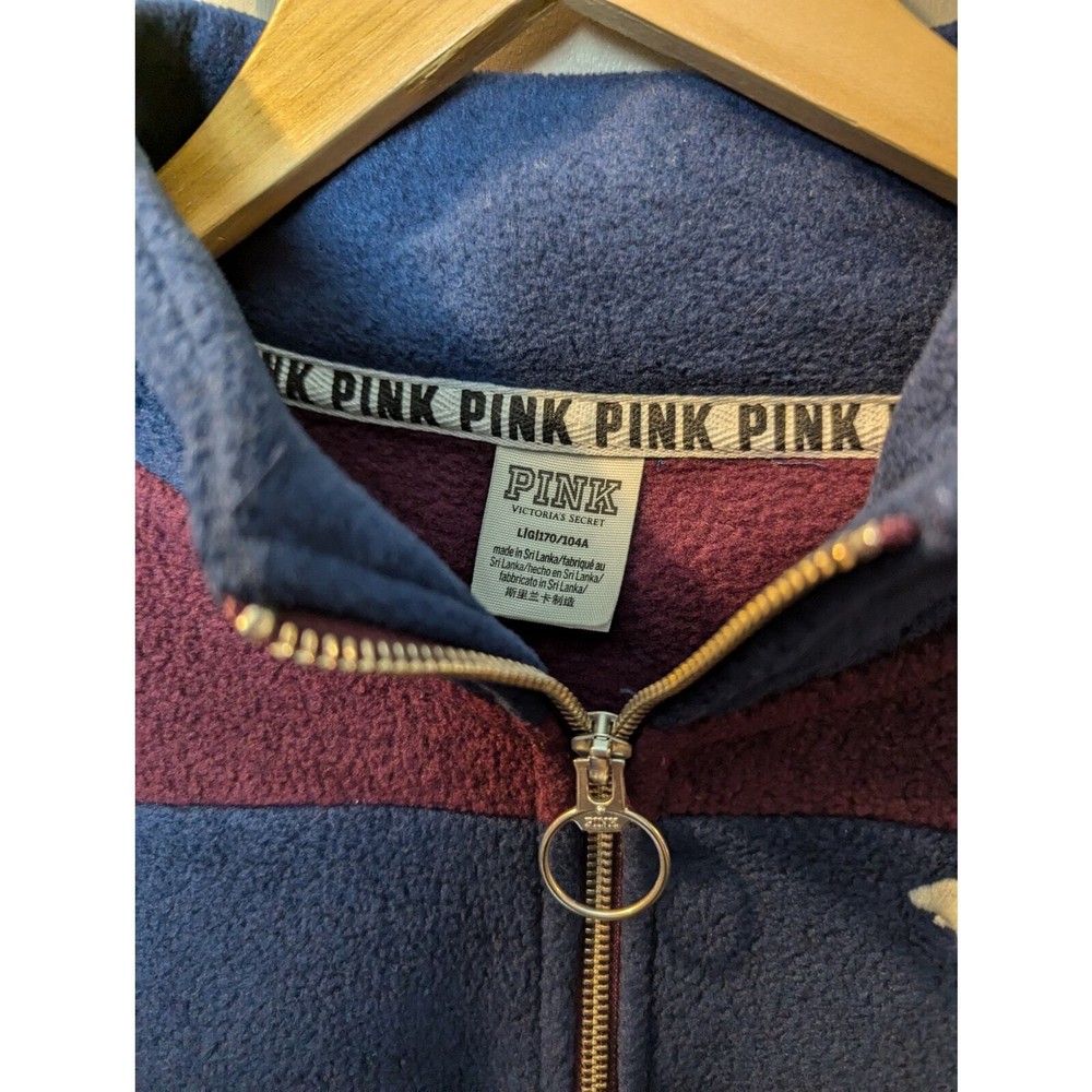 <![CDATA[<div>Victoria's Secret Pink Fleece Quarter Zip Pull Over Cozy Warm Preppy Jacket L striped blue and burgundy. In excellent condition with no noteworthy flaws please review all photos to fully understand condition and sizing.