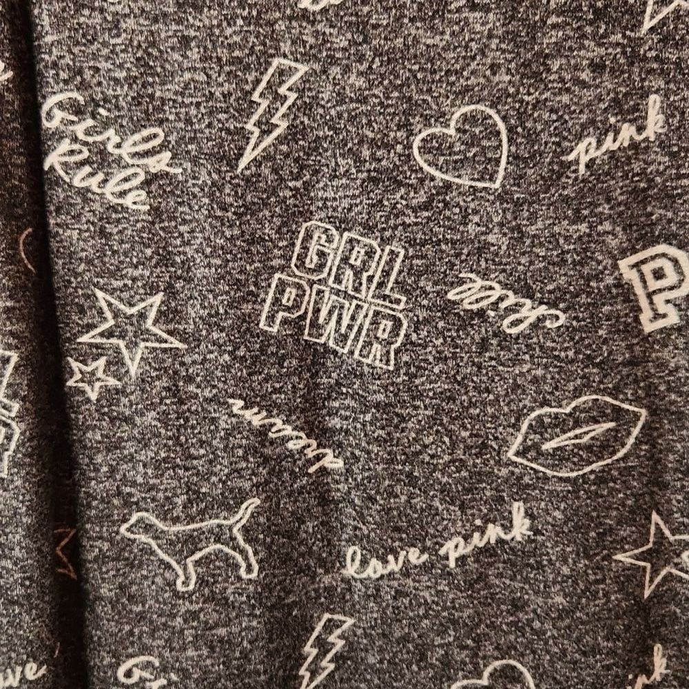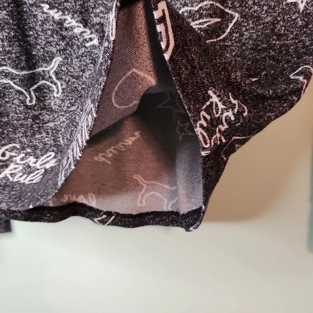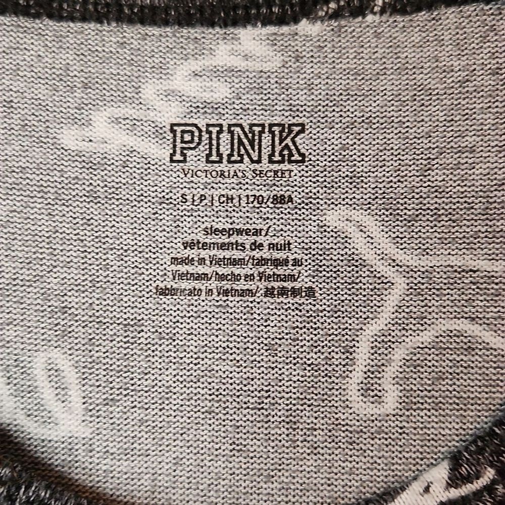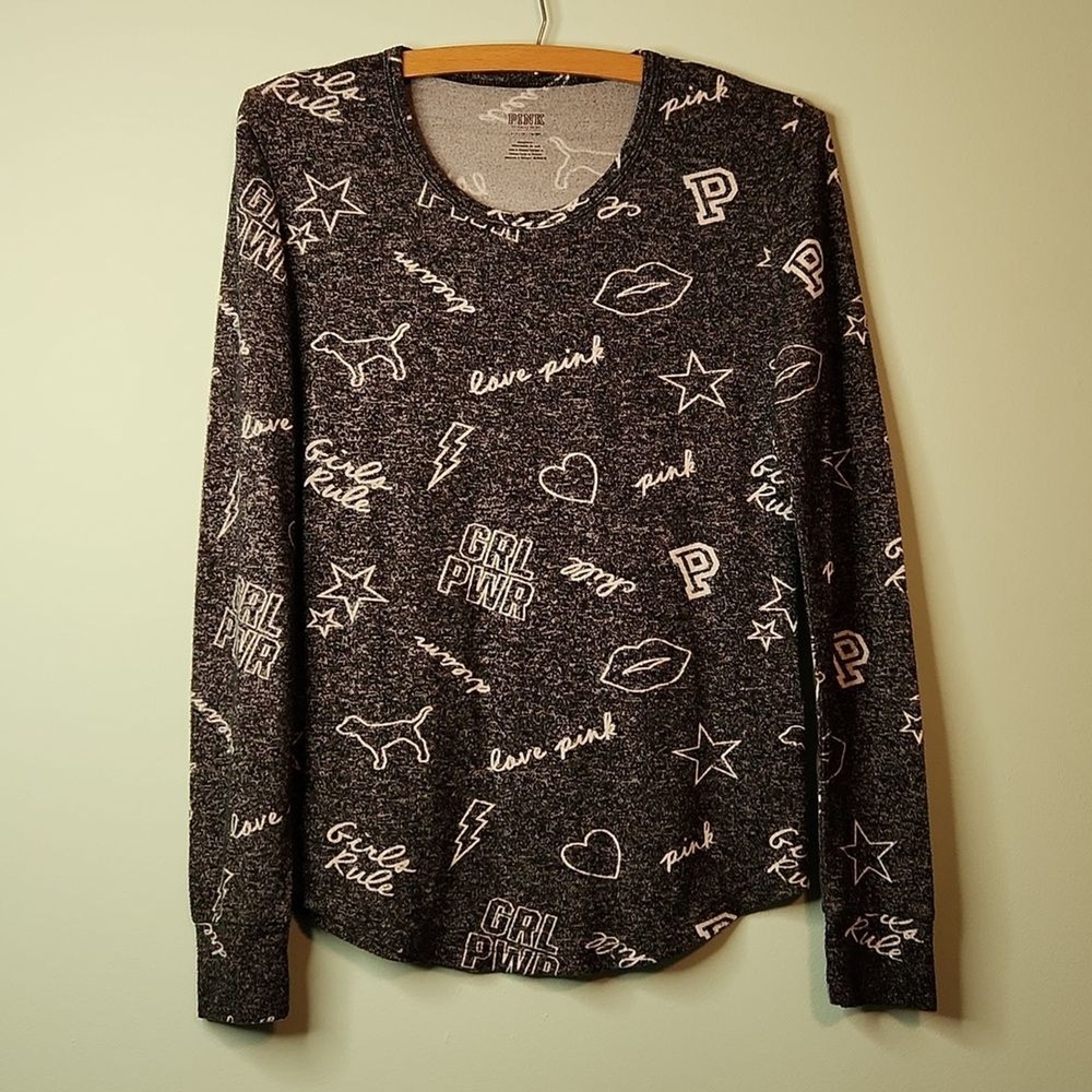 Victoria's Secret Pink Women’s Size: Small S Color: Black speckled with white and white graphics Soft and comfortable long sleeve sleep shirt with mod fem graphics - GRL PWR chill Girls Rule love pink kissy lips, stars, hearts, dog Material: 75% viscose, 25% polyester Approximate measurements, unstretched: Bust (pit to pit) 16", Sleeve (shoulder to cuff) 25", Length 23 1/2" Very Good preowned condition. Minor wear. Item may have folds, wrinkles, or creases from storage.