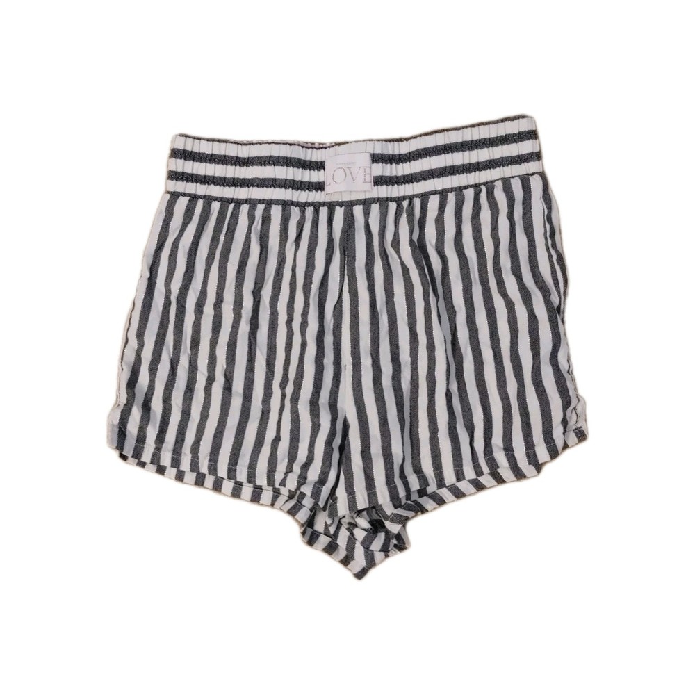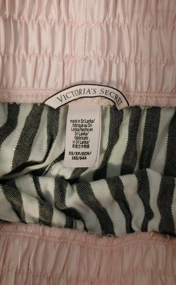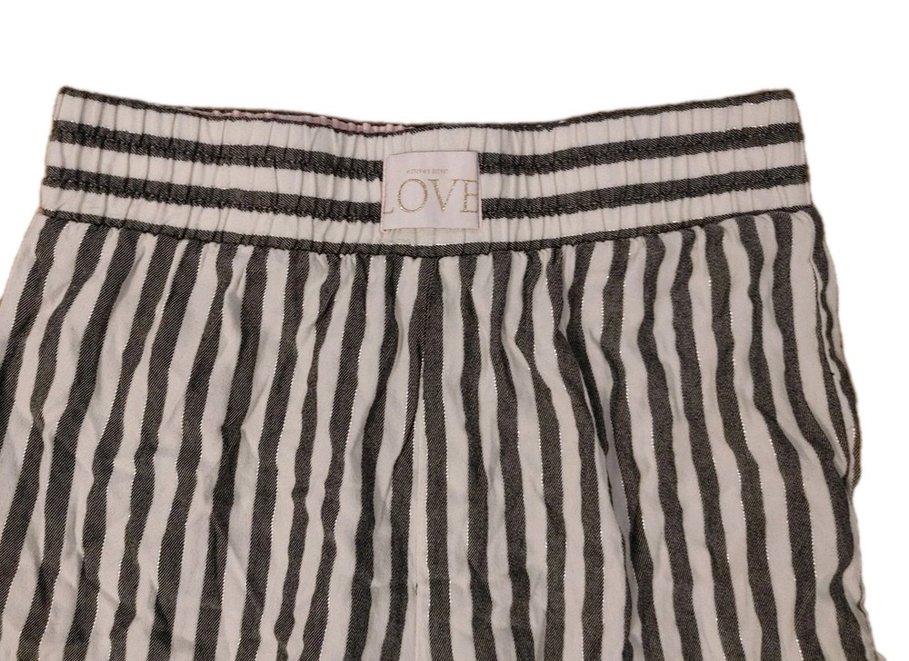 These Victoria's Secret sleep shorts in women's XS feature a comfortable and stylish design with a gray, white and silver striped pattern. The lightweight viscose and cotton blend fabric is super soft, making them perfect for a restful sleep. With an elastic waist closure and side hem slits, these shorts offer a cozy fit while also adding a touch of fashion with the iconic Victoria's Secret logo. Machine washable and suitable for all seasons, these sleep shorts provide a colorful and classic look for a comfortable night's sleep. In excellent pre-owned condition. XS. Waist measures 12.5 inches across the front. Elastic waist gives extra room if needed. Rise measures 12 inches ( high rise) Inseam measures 2 inches. K