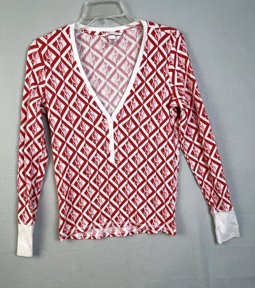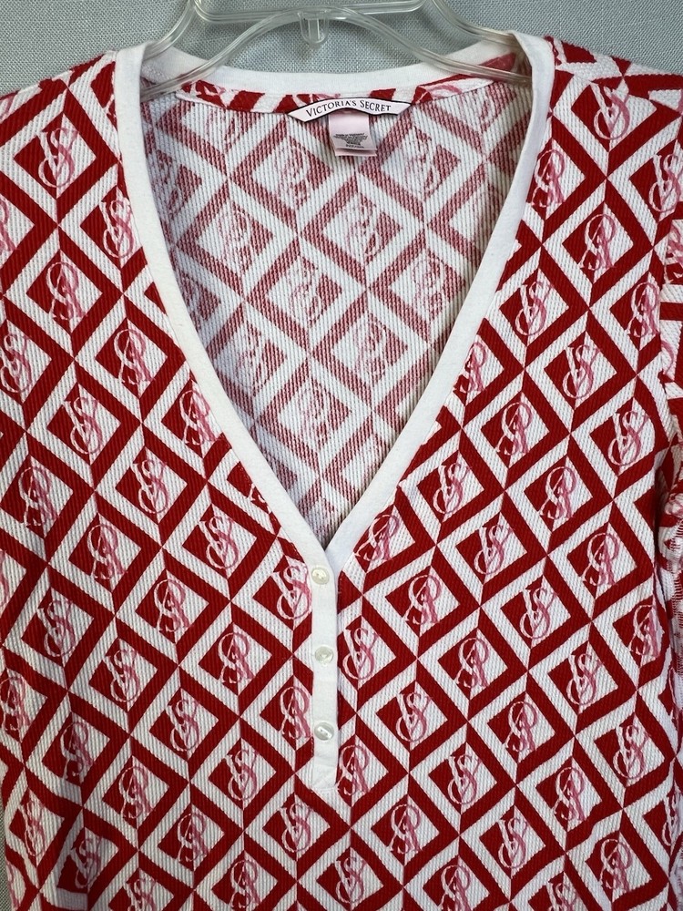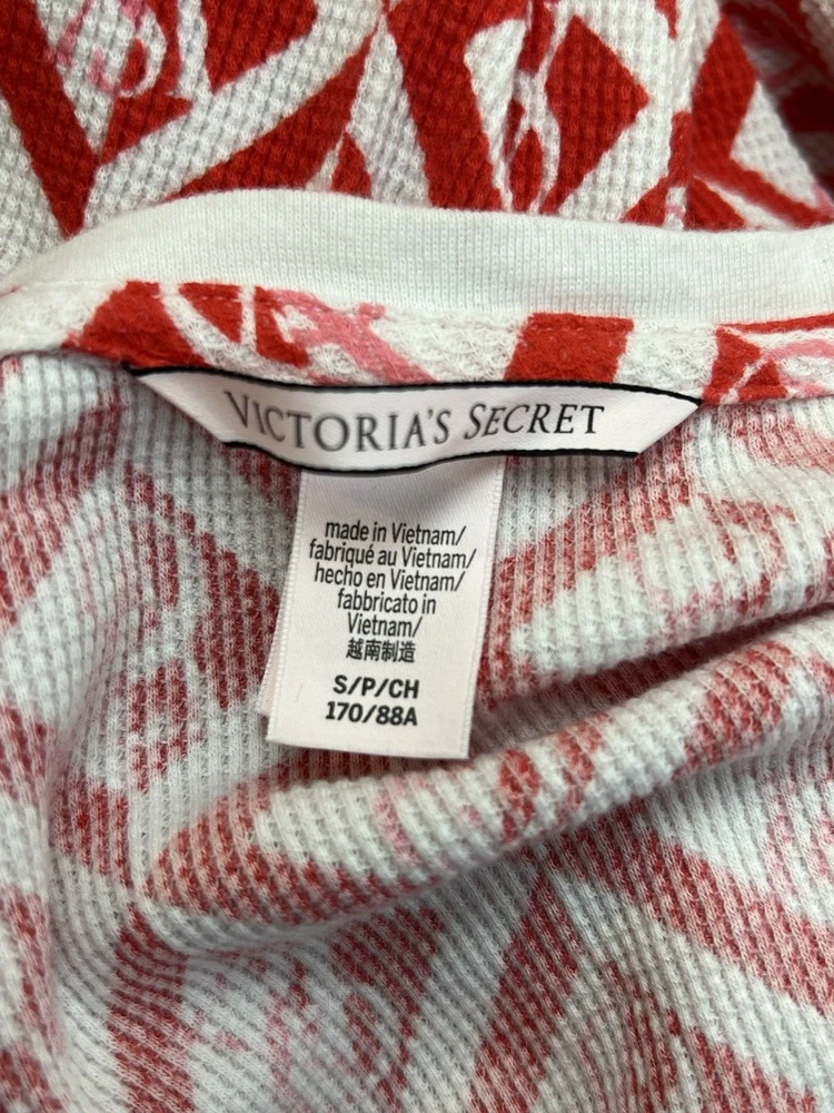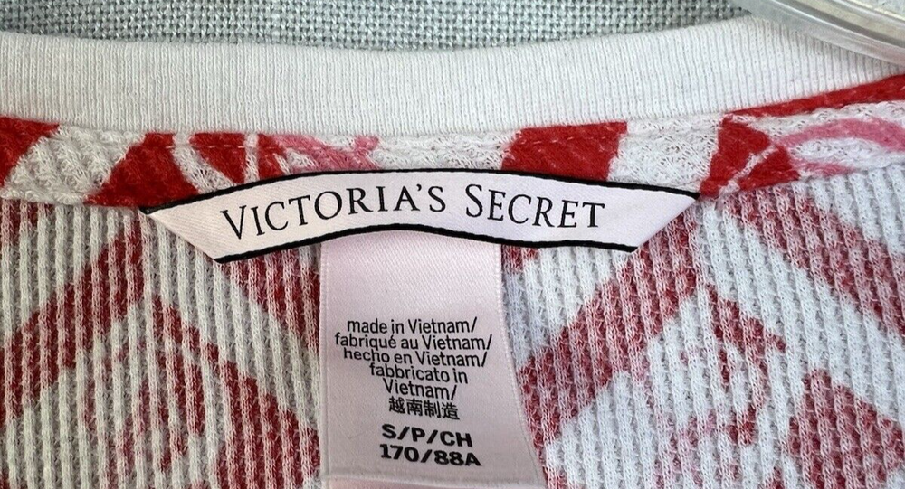 Victoria's Secret Thermal Top Women's Small Red Cream #Lounge #Comfy #Warm Good Condition 2125522 6 2089...