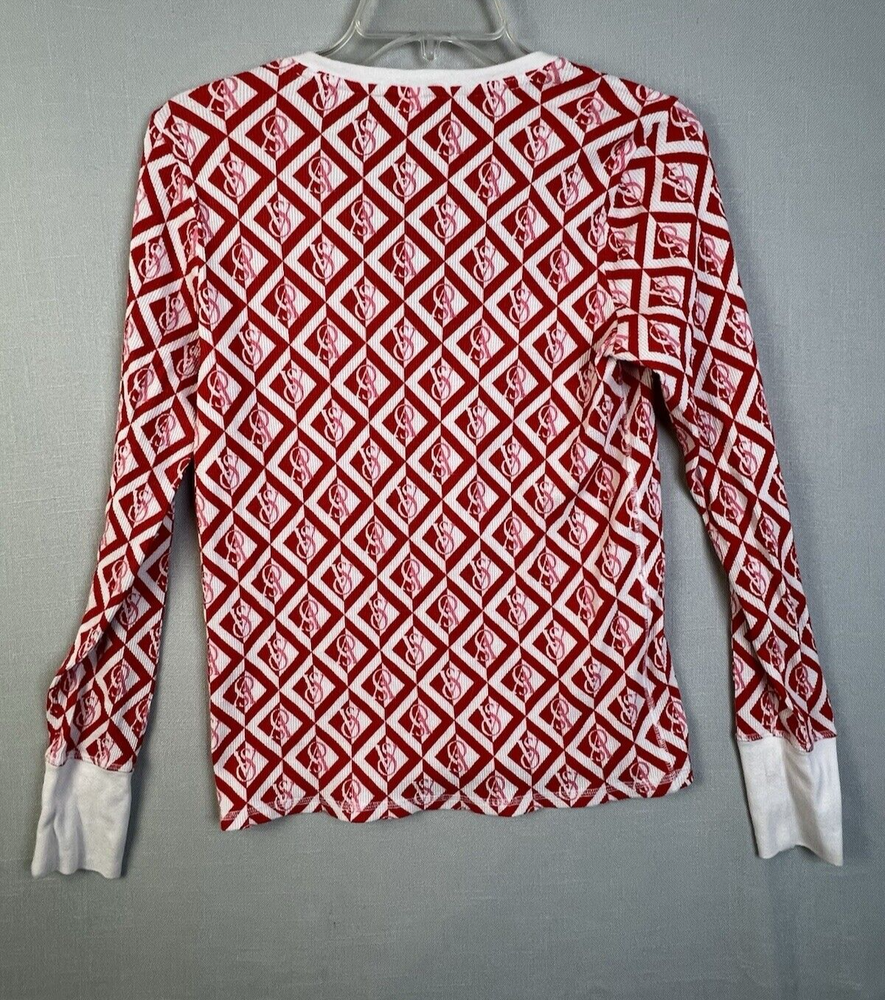 Victoria's Secret Thermal Top Women's Small Red Cream #Lounge #Comfy #Warm Good Condition 2125522 6 2089