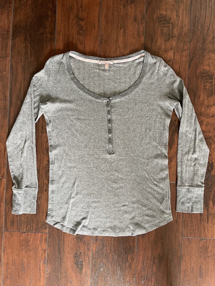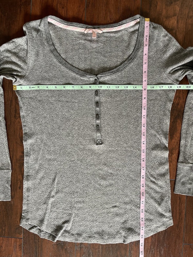 Victoria’s Secret Women’s Long Sleeve Henley PJ Pajama Top Gray Shimmer Size L Shirt you will receive is pictured from second photo onwards. Smoke free home. Please review all photos for size and condition. Fabric has piling otherwise in good shape. There are silver metallic strands woven into the fabric that gives it a very pretty shimmer - camera couldn’t pick up this detail unfortunately. I try my absolute best to photograph all angles, features and flaws. Measurements are included for all clothing listings. Please review carefully. If there is anything specific you would like to see, please send me a message prior to purchase☺️ Tote 14