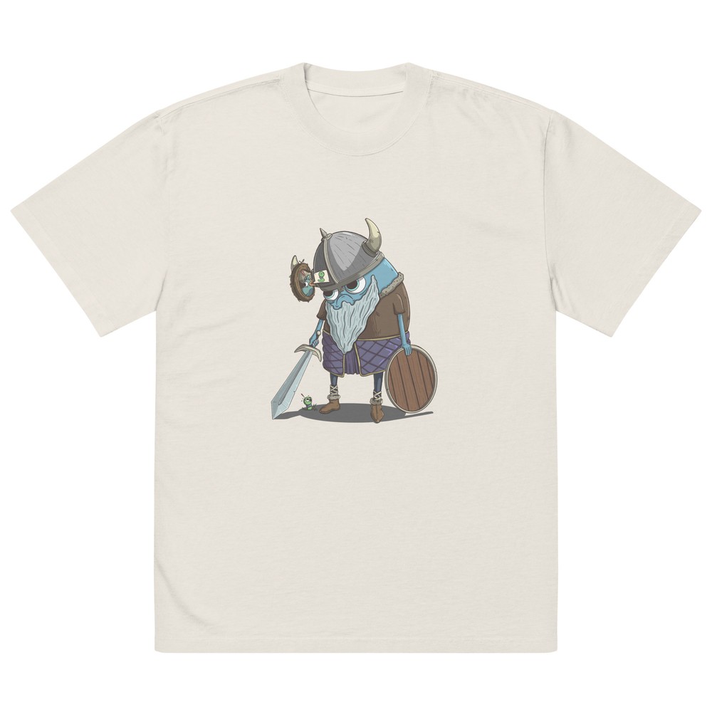 This tee is so soft and fun! The quirky Viking and bird design always gets compliments. Perfect oversized fit for lounging or styling with jeans. Love wearing it!