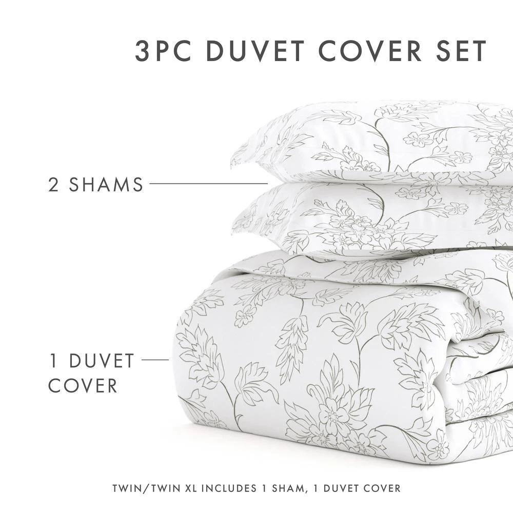 Duvet Insert Not Included Oversized Dimensions Zippered closure and duvet corner ties The Becky Cameron 3-Piece Vine Duvet Cover Set will enhance and improve your bedroom decor. Tailored for a perfect fit and made with the finest imported microfiber yarns for ultimate comfort. This luxury duvet cover set is expertly stitched for durability to last a lifetime and raises the bar for coziness and elegance. Includes two matching pillow shams to bring elegance to any bedroom. Superior weave for durability and a buttery-soft feel Easy Care: Machine wash cold, Tumble dry low, Fade Resistant, wrinkle-resistant - no ironing necessary Wicking properties keep you relaxed and dry King/California King Size Set Includes: 1 King/California King Duvet Cover: 112 in. x 98 in. ; 2 King Shams: 20 in. x 40 in. (2 in. flange) Queen/Full Size Set Includes: 1 Queen/Full Duvet Cover: 96 in. x 96 in. ; 2 Standard Shams: 20 in. x 30 in. (2 in. flange) Twin/Twin Extra Long Size Set Includes: 1 Twin/Twin Extra Long Duvet Cover: 74 in. x 94 in. ; 1 Standard Sham: 20 in. x 30 in. (2 in. flange) Duvet Insert not included