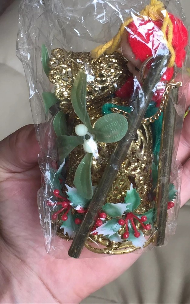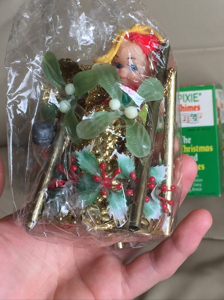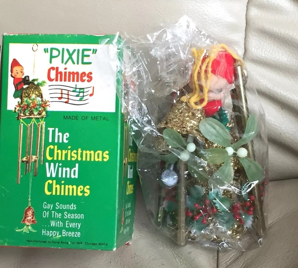 1950s SNP HONG KONG CHRISTMAS PIXIE ELF Mistletoe Bell Brass Wind Chimes. brand new in original plastic in box, some wares to the box, rare to find these brand new,...