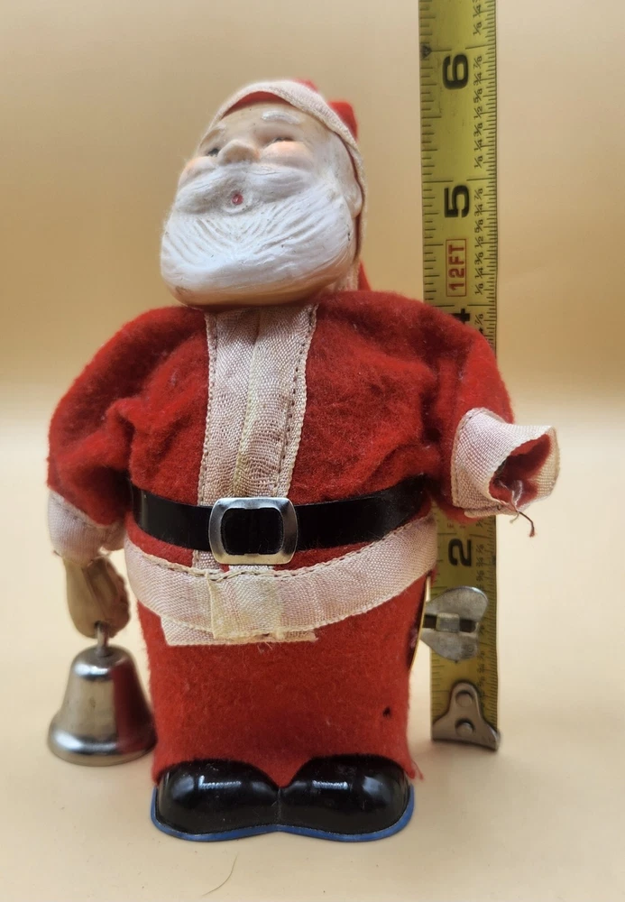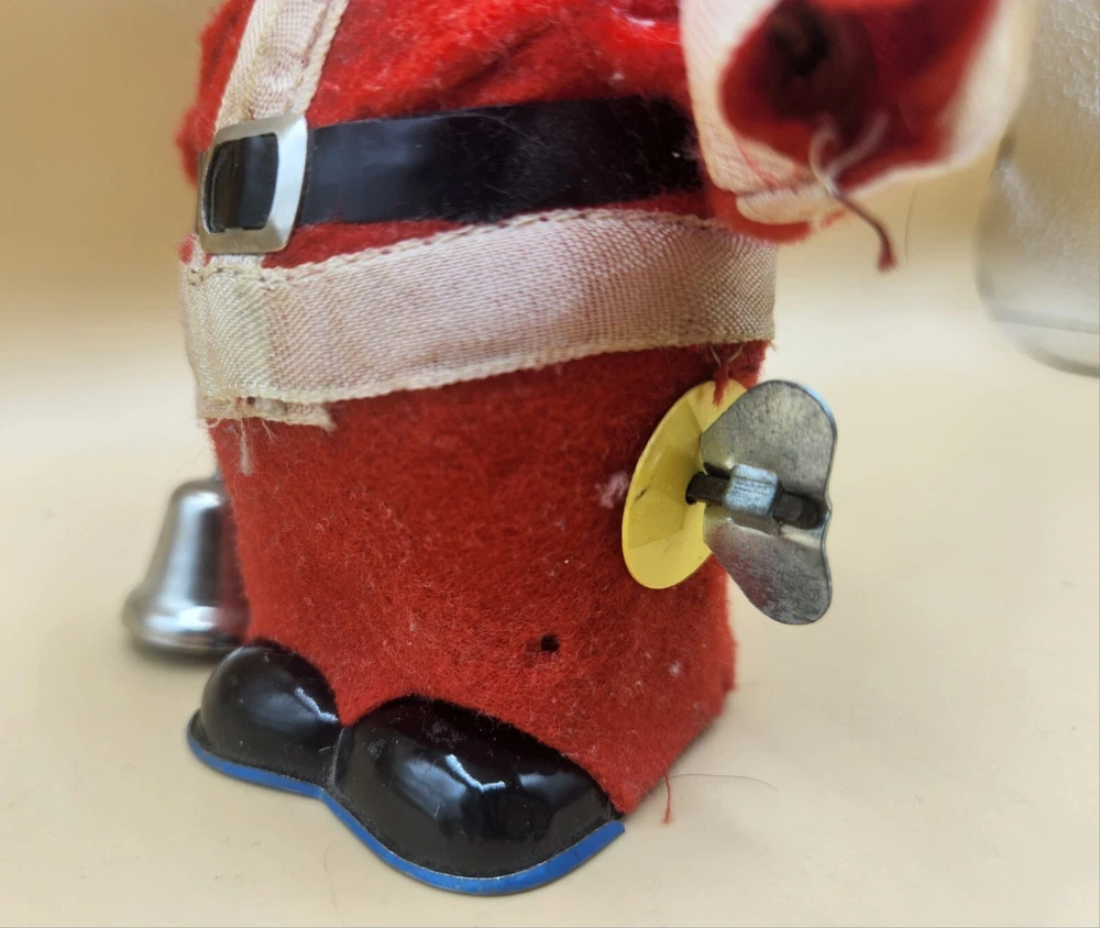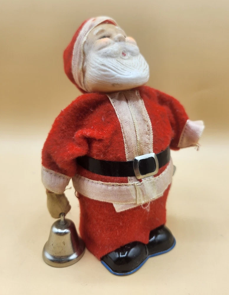 Vintage 1950's Wind-Up Santa Claus Made in Japan WORKS, SEE VIDEO!! ESTATE SALE FIND Santa is missing a hand. His other hand rings the bell when he is wound up. Please watch video for explanation on how he works. He has been shelved for decades and is therefore a bit dusty. SMOKE FREE HOME FREE SHIPPING