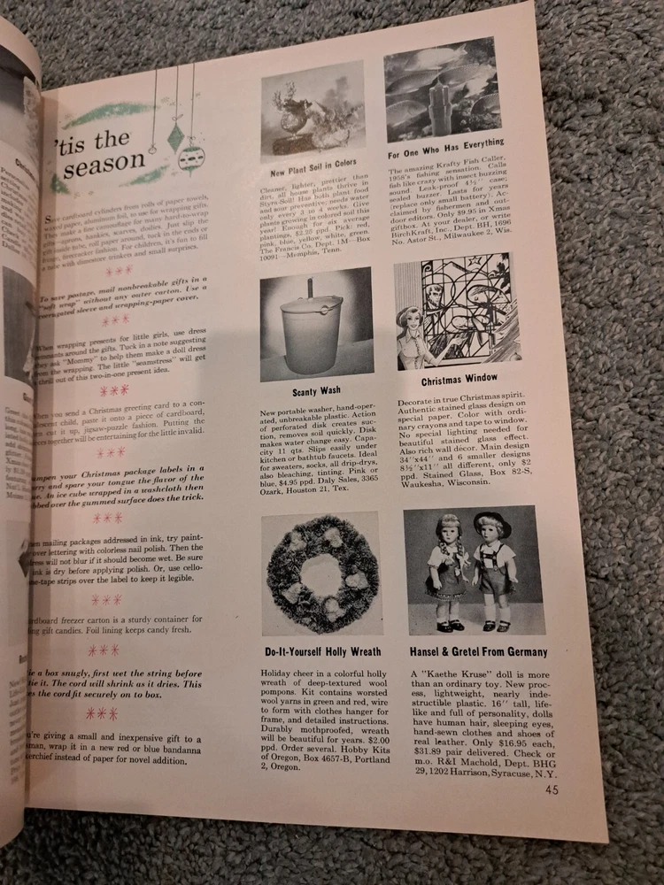 Vintage 1958 Better Homes & Gardens Christmas Ideas. 170 pages. With ads. Light wear. Minor handling wear. Combine shipping with other years.