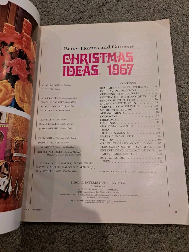 Vintage 1967 Better Homes & Gardens Christmas Ideas. 162 pages. With ads. Some light wear. Some light creases to cover. Combine shipping with other years.