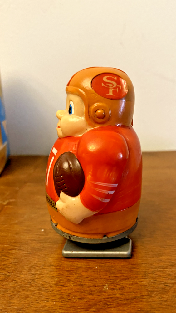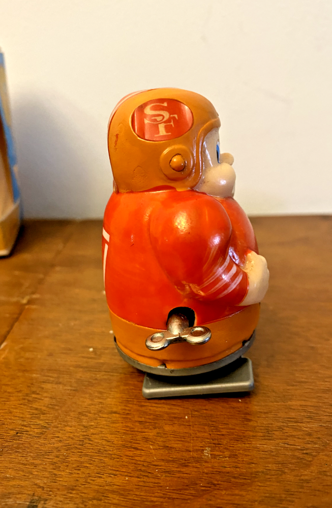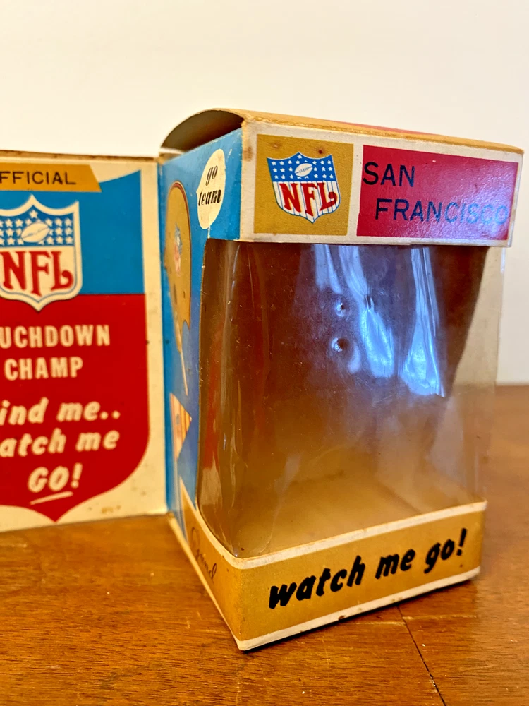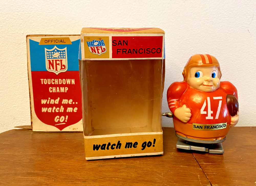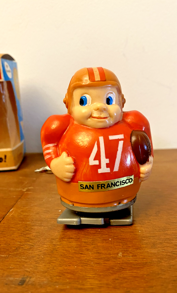 For sale - Vintage 1967 NFL San Francisco 49ers #47 Touchdown Champ Wind-Up Toy w/ Ori Box Toy is in very good vintage condition...the box plastic has a slice in it and the glue has been dried up and the plastic is no longer attached... Please view each photo as they are the best description for this item. Thanks for looking.