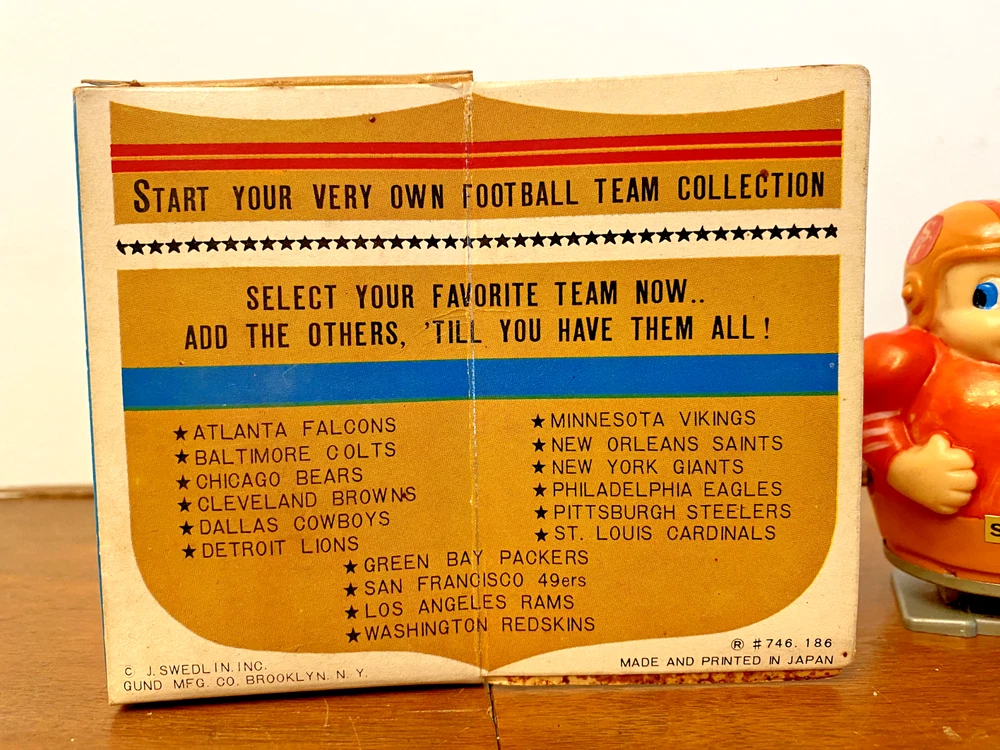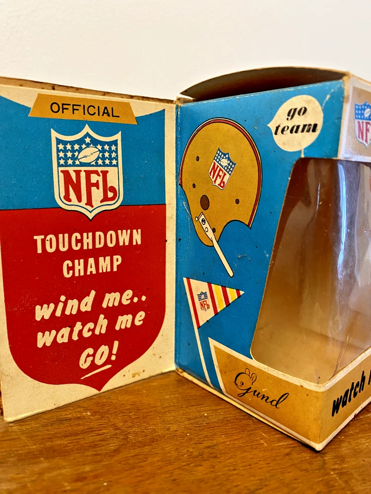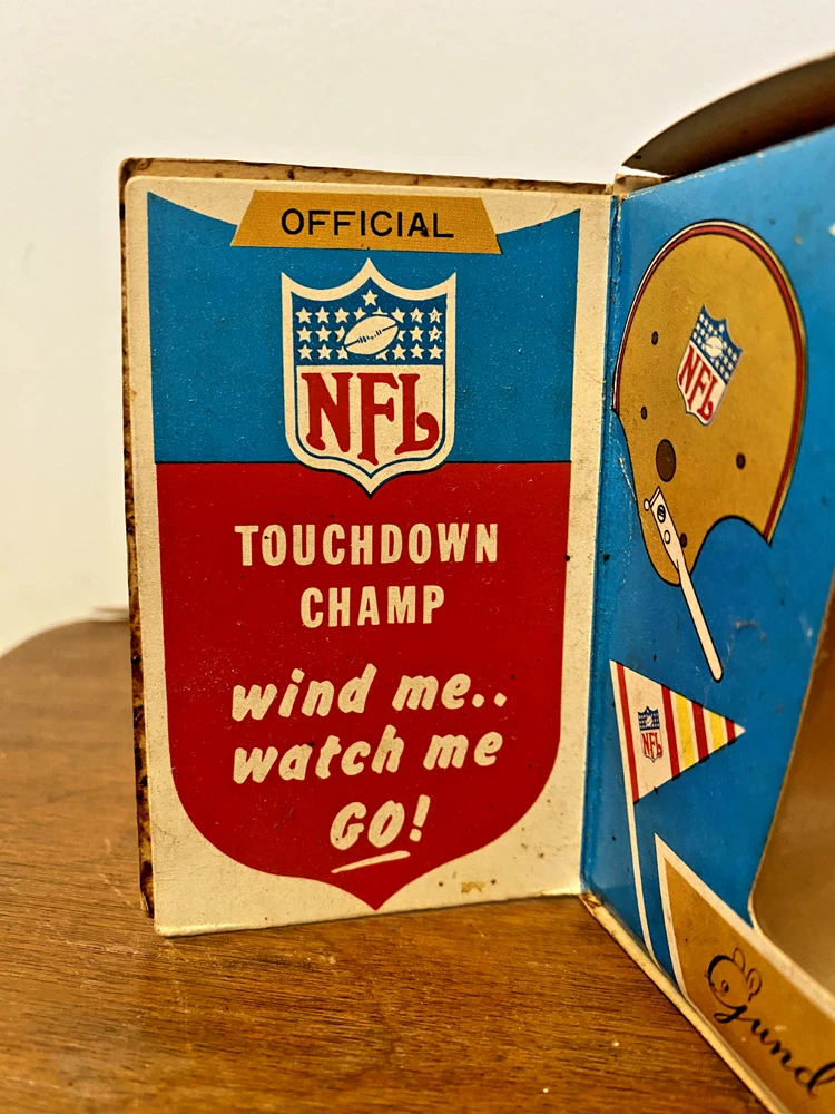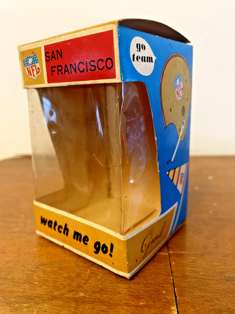 For sale - Vintage 1967 NFL San Francisco 49ers #47 Touchdown Champ Wind-Up Toy w/ Ori Box Toy is in very good vintage condition...the box plastic has a slice in it and the glue has been dried up and the plastic is no longer attached... Please view each photo as they are the best description for this item. Thanks for looking.