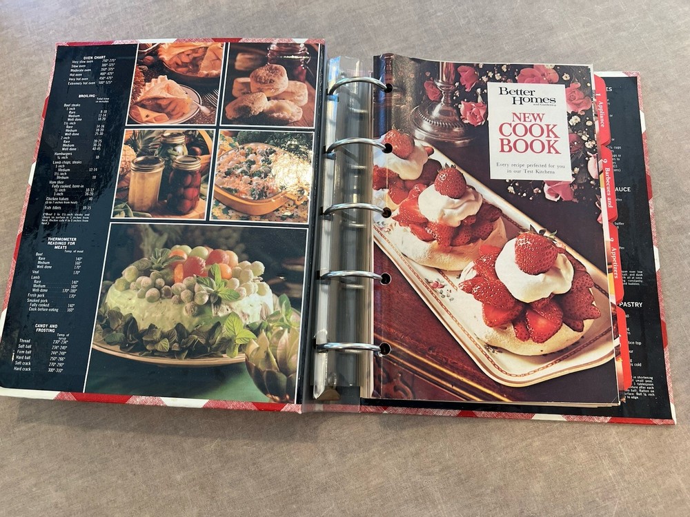 A vintage 1976 Better Homes & Gardens New Cookbook in hardcover format, featuring a 5-ring binder. This original cookbook is a valuable collectible for enthusiasts....