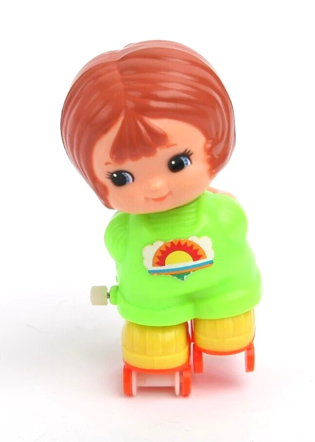 Vintage 1977-78 Tomy Wind-Up Rollerskating Rollerskate Girl KID-A-LONGS Toy In very good, pre-owned condition. Wind up & skate function works great. Please see pictures....