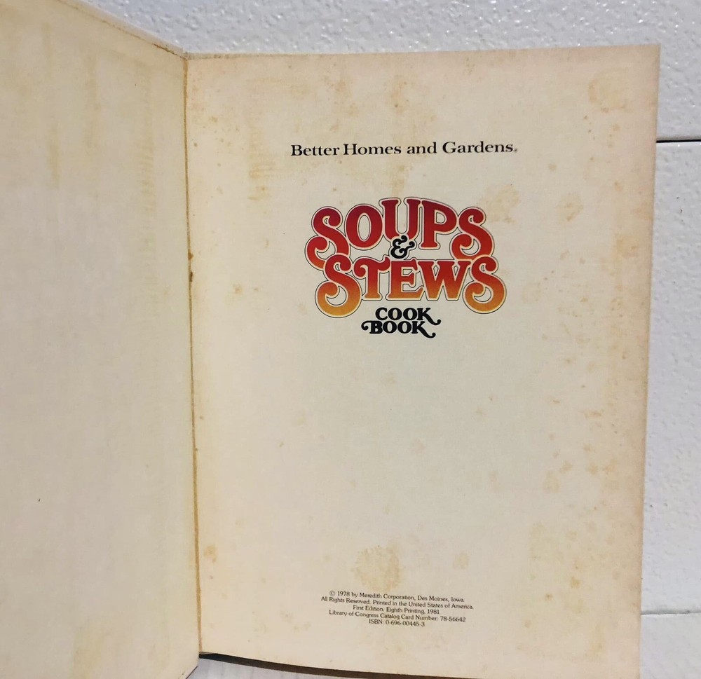 Vintage 1978 Better Homes and Gardens Soups & Stew Cook Book Over 200 Recipes Included Book Does Have What Appears To Have Slight Water Damage No Ripped Torn Or Missing Pages Overall Good Pre-Owned Condition Measurements Are In Inches And Rounded To The Nearest Inch Check Out My Other Listings SHIPPING TIME: We ship out all orders within 1 business day of your payment Clearing Any And All Clothing Items Have Been Washed, Laundered And Cleaned In Compliance With eBay Policy.