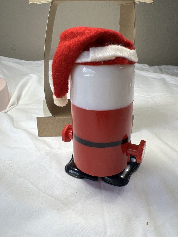 This vintage 1980s collectible features a wind-up walking Santa Claus design, perfect for the holiday season. With its unique boxed packaging, this piece is a must-have for any collector or fan of Christmas decor. The item was manufactured in 1986 and has since been well-maintained, ready for display or use. The design showcases a classic 1980s style, complete with intricate details and a charming appearance. This figurine is perfect for those who love to collect unique holiday decorations and would make a great addition to any collection.