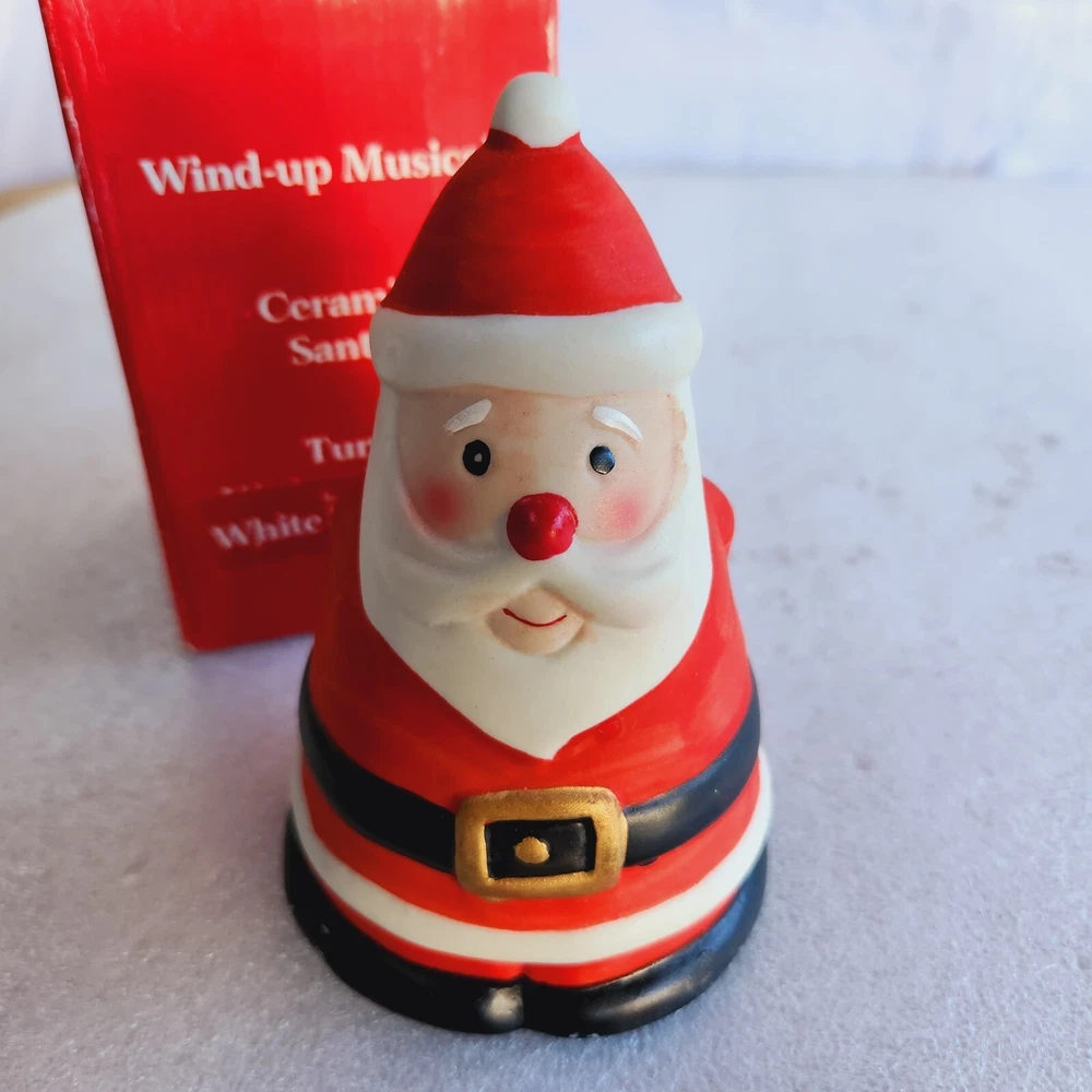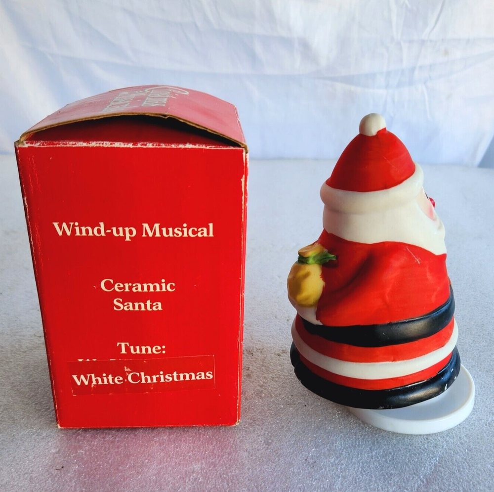 1986 Vintage Christmas Musical Wind Up Ceramic Santa: Tune We Wish You A Merry. Good condition. WORKS.