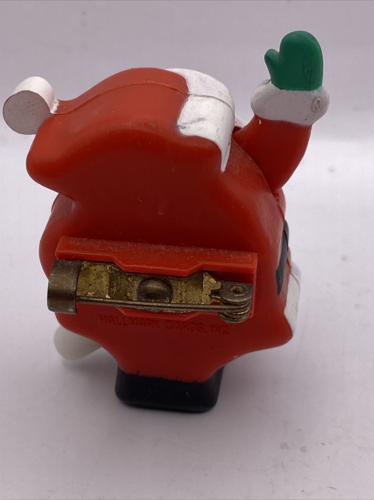 Vintage 1988 Hallmark Cards Santa Wind-Up Waving Pin Brooch 1.75” Plastic B9A....