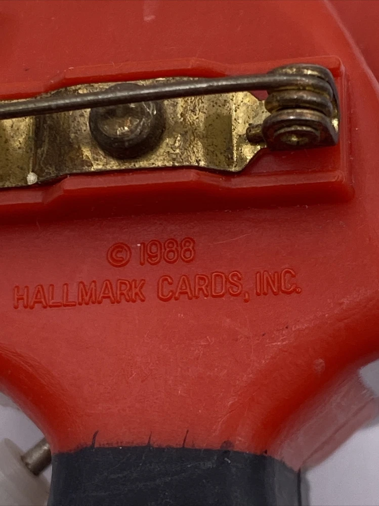 Vintage 1988 Hallmark Cards Santa Wind-Up Waving Pin Brooch 1.75” Plastic B9A.