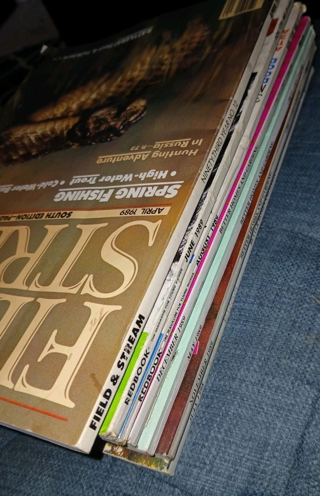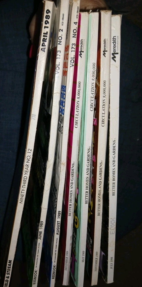 This vintage magazine lot includes seven issues from 1989 featuring publications such as Redbook, Better Homes & Gardens, and Field & Stream. The magazines cover a variety of topics including hobbies & crafts, fashion, and fishing. With a mix of content focusing on popular culture, television shows, and outdoor activities, this lot provides a glimpse into the interests and trends of the late 1980s. Each magazine offers a unique perspective and collection of articles for readers interested in a range of subjects from that time period.