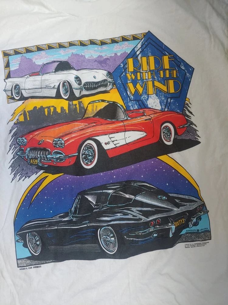 Vintage 1990s Chevrolet Chevy Size XL T-Shirt Corvette Ride With The Wind. No stains on this shirt, looks like it was never worn