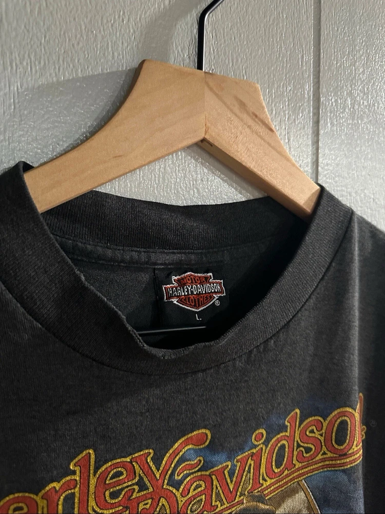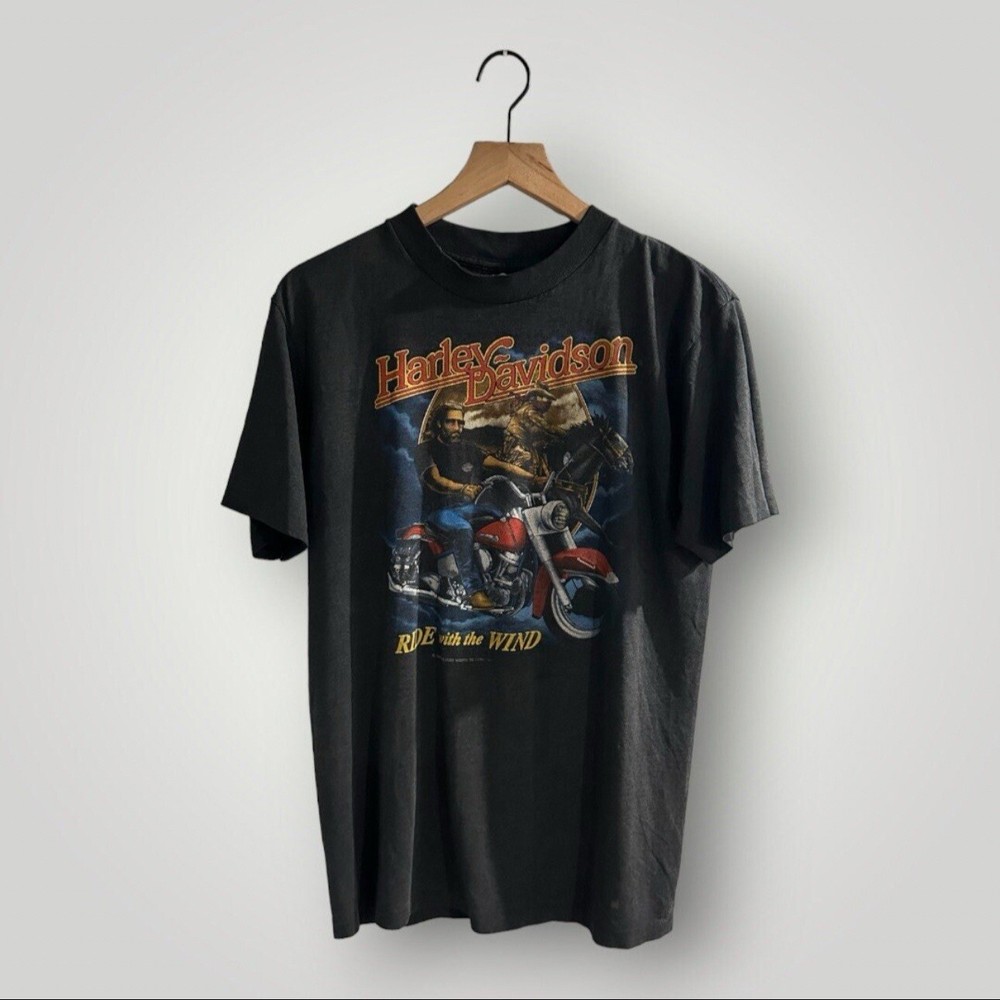 Vintage 1991 Harley Davidson "Ride With The Wind" Raleigh, NC T-Shirt Tag: Harley Davidson Size: Large Condition: Good condition! Graphics are in good condition. Minimal cracking on front and back graphic. No rips or holes. Single stitched. Any Harley collector or fan needs to pick this up! Feel free to message for any questions, more pictures or need measurements! I want to make sure you love the item that you are purchasing!